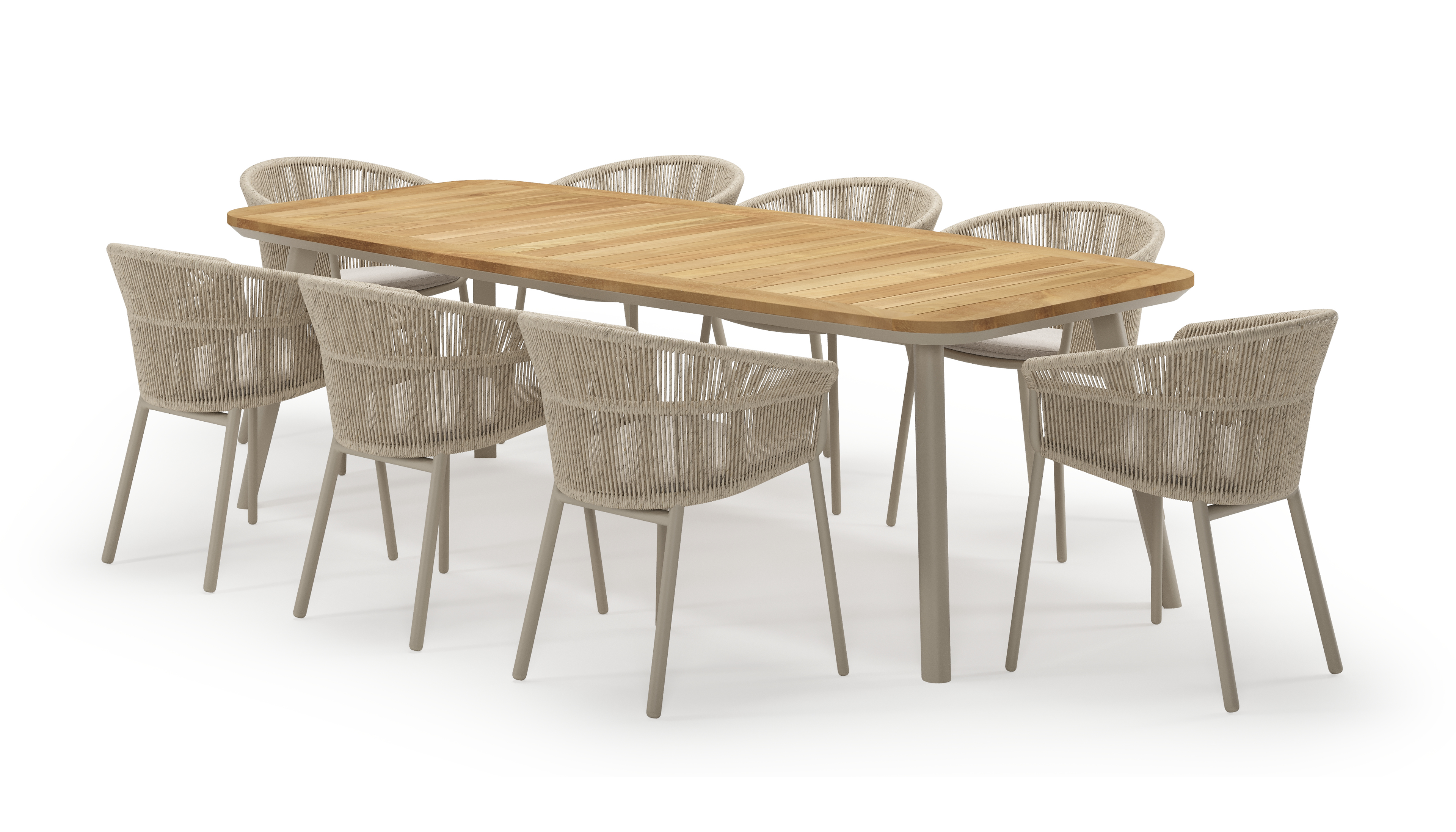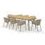De Mosa tuinset herken je makkelijk aan het afgerond rechthoekig tafelblad en de naar buiten afgeschuinde poten. De tafel heeft een moderne look met een elegante touch.