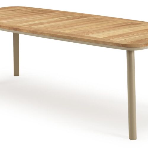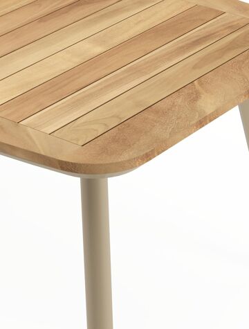 Een tafelblad uit teak staat gelijk aan bijzondere kwaliteit en natuurlijk design. Teak is een kwalitatieve houtsoort gekenmerkt door zijn hardheid. Aangezien hout leeft, kan de structuur of kleur licht anders zijn dan op het beeld weergegeven.