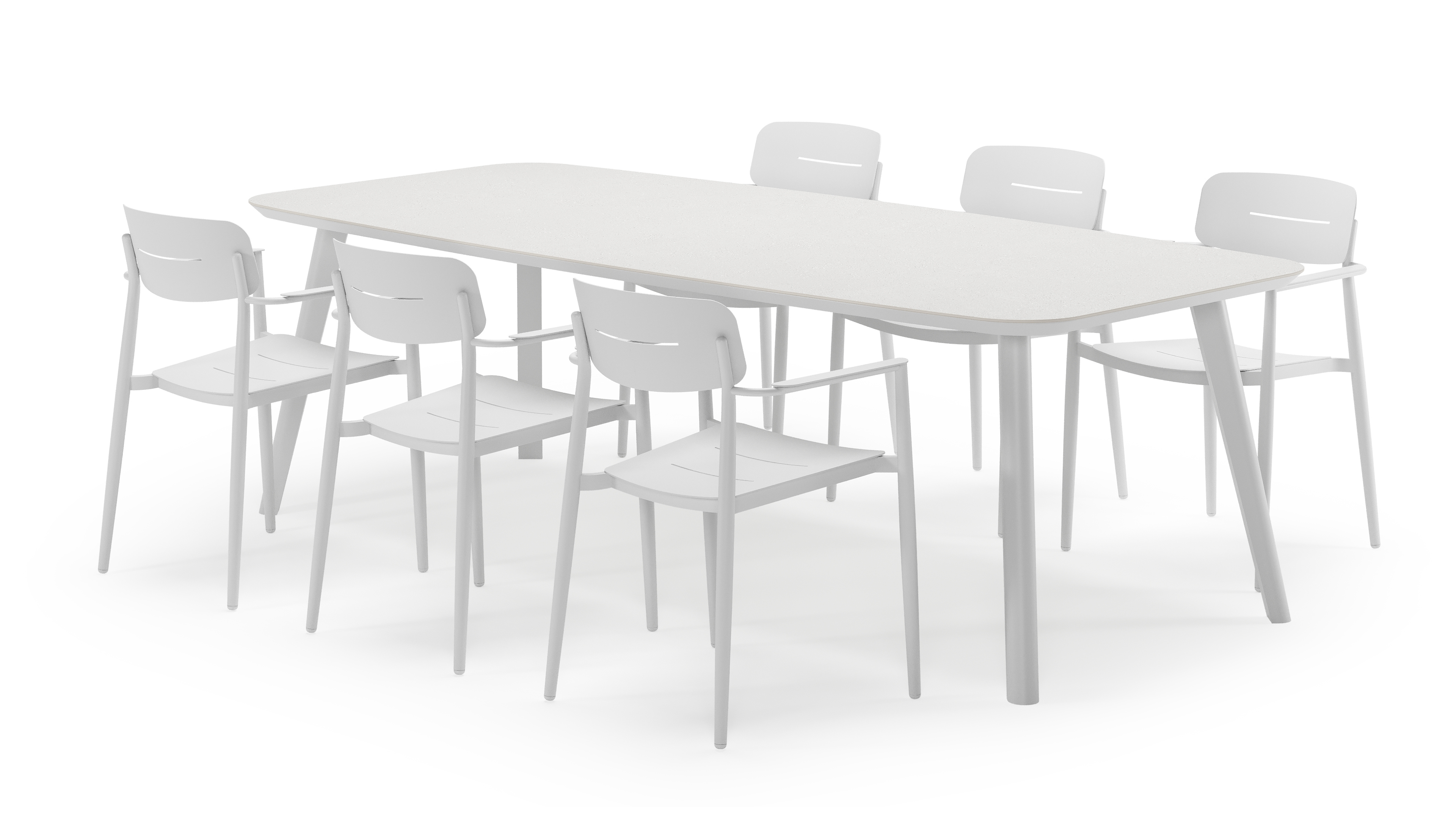 De Mosa tuinset herken je makkelijk aan het afgerond rechthoekig tafelblad en de naar buiten afgeschuinde poten. De tafel heeft een moderne look met een elegante touch.