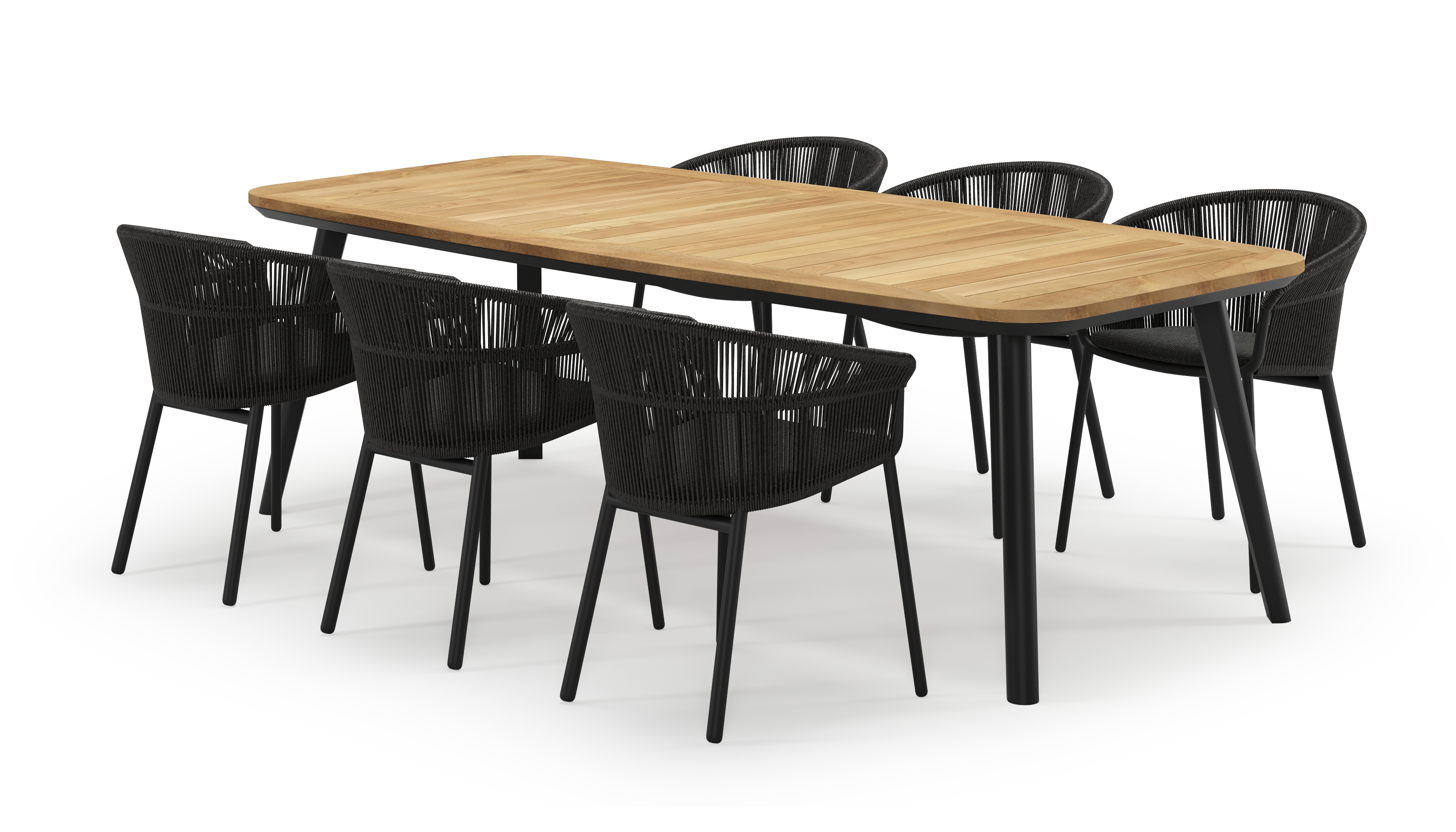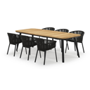 De Mosa tuinset herken je makkelijk aan het afgerond rechthoekig tafelblad en de naar buiten afgeschuinde poten. De tafel heeft een moderne look met een elegante touch.