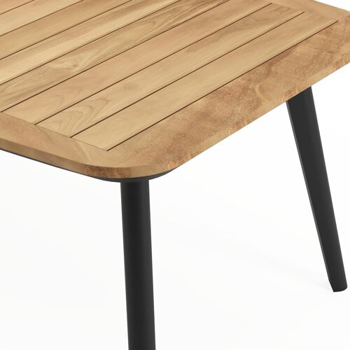 Mosa tuintafel bootvorm in zwart aluminium en teak natural finish - L 270 x B 115 x H 74 cm | Exterioo