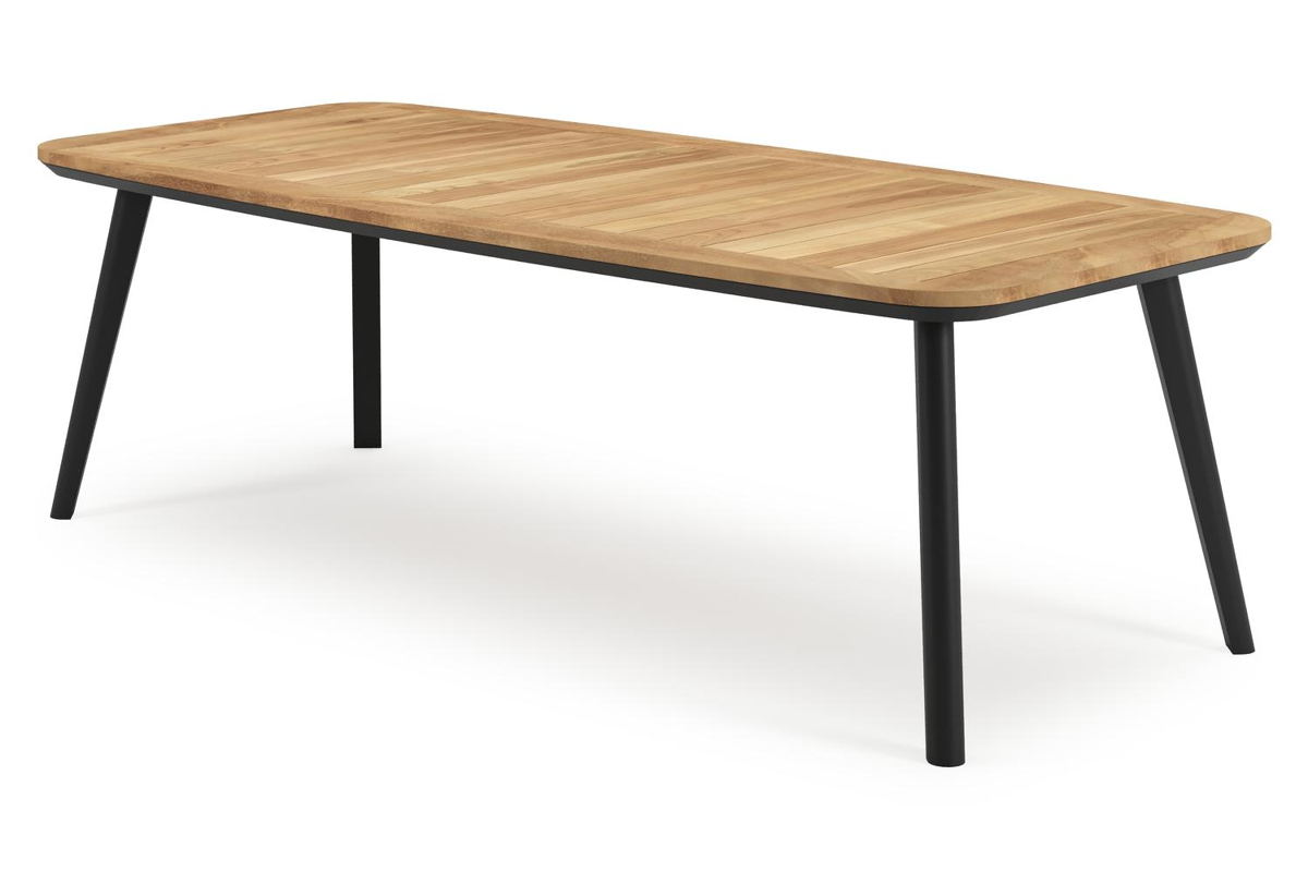 De Mosa tuintafel herken je makkelijk aan het afgerond rechthoekig tafelblad en de naar buiten afgeschuinde poten. De tafel heeft een moderne look met een elegante touch.