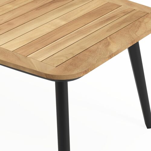 Een tafelblad uit teak staat gelijk aan bijzondere kwaliteit en natuurlijk design. Teak is een kwalitatieve houtsoort gekenmerkt door zijn hardheid. Aangezien hout leeft, kan de structuur of kleur licht anders zijn dan op het beeld weergegeven.