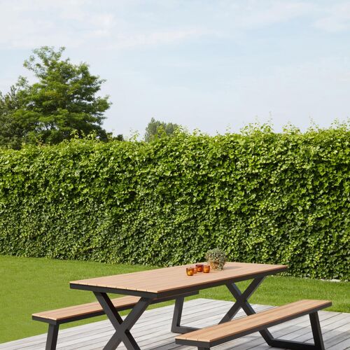 De Mundo picknicktafel heeft een moderne en gezellige uitstraling. Het frame is gemaakt uit roestvrij aluminium, een stevig en licht materiaal. Je kan de picknicktafel makkelijk herkennen door zijn kruispoot en afgeschuinde randen, dit geeft de picknicktafel een goede ondersteuning en stevig karakter. Daarnaast beschikt de picknicktafel ook over een lage instap, waardoor het makkelijk is om te zitten. Het tafelblad en banken zijn afgewerkt in polywood. Let wel: polywood is een synthetisch materiaal. Intensieve warmte kan het materiaal wel beschadigen - zoals zonlicht dat door glazen valt. Gebruik daarom altijd een onderzetter of dienblad. Met de Mundo picknicktafel geniet je van geweldige buitenmomenten aan een scherpe prijs.