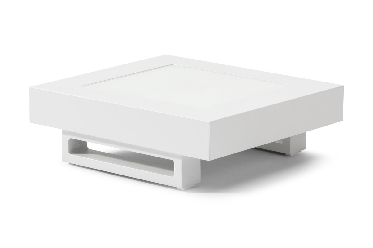Nano bijzettafel in wit aluminium en wit glas - L 60 x B 60 x H 25 cm | Exterioo