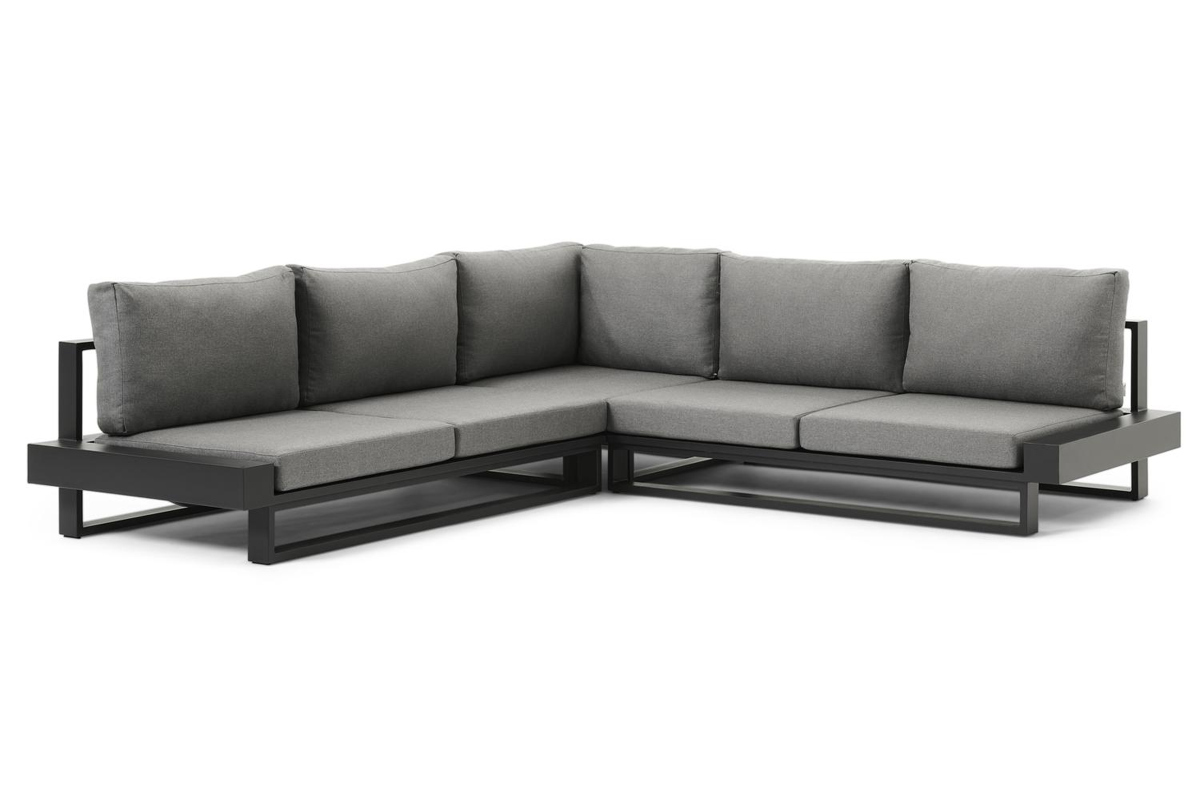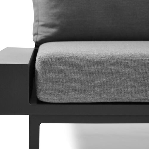 Nano loungeset in zwart aluminium met grijs coussins en Weather+ Softtouch kussens | Exterioo