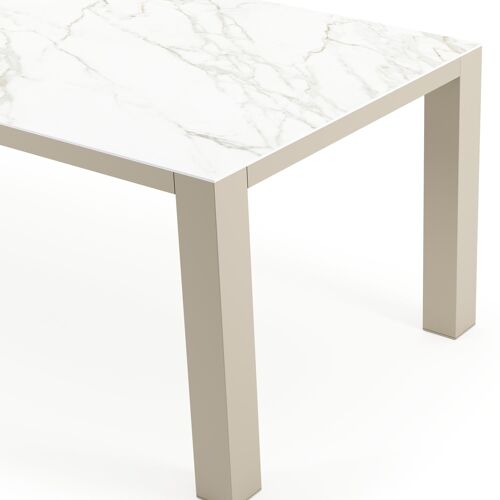 Nano tuintafel rechthoekig in beige aluminium en volkeramiek Calacatta - L 240 x B 100 x H 75 cm | Exterioo