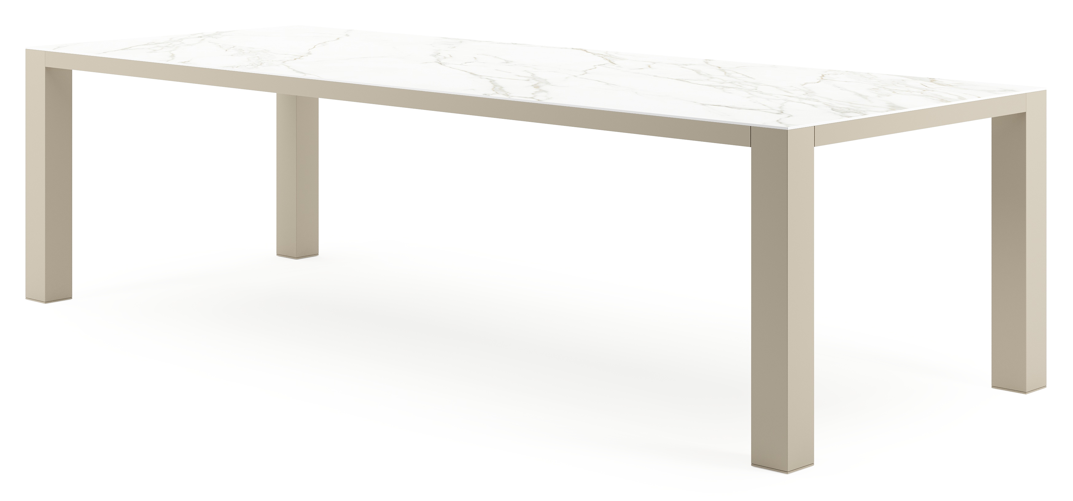 Nano tuintafel rechthoekig in beige aluminium en volkeramiek Calacatta - L 280 x B 110 x H 75 cm | Exterioo tuinmeubelen