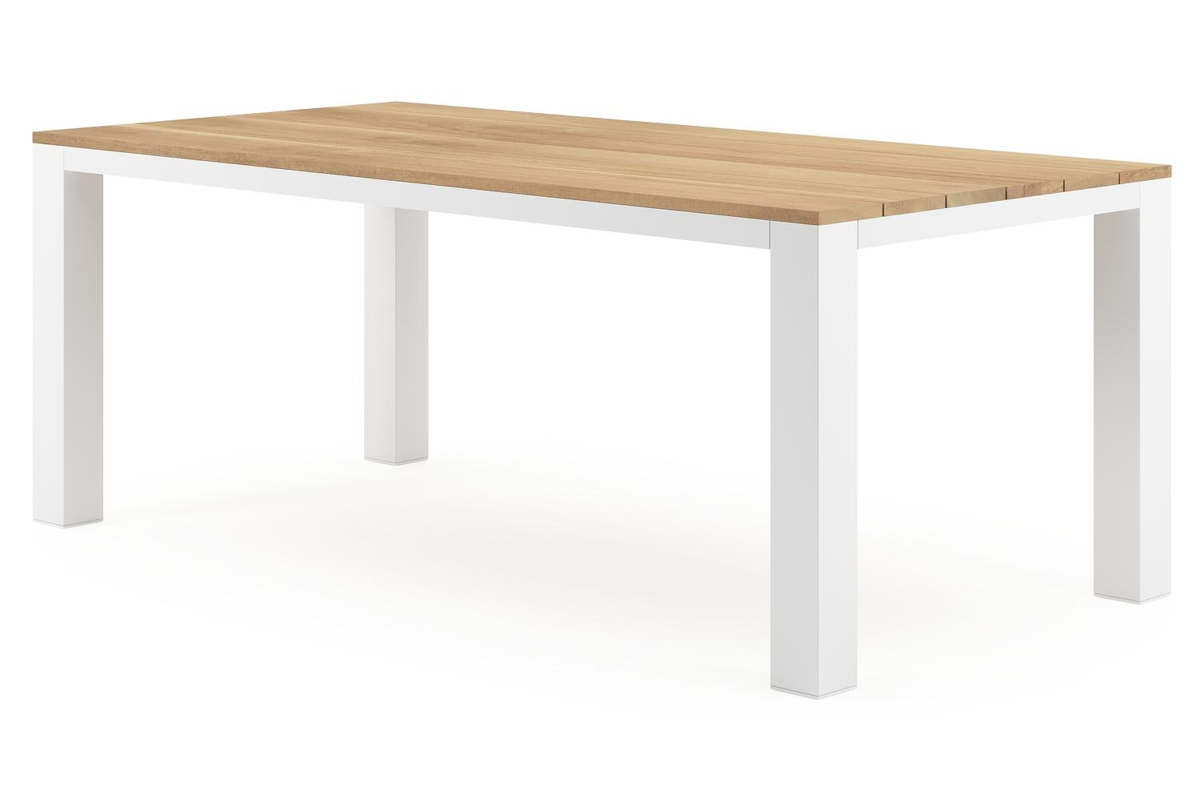 Nano tuintafel in wit aluminium en teak - L 200 x B 100 x H 75 cm | Exterioo