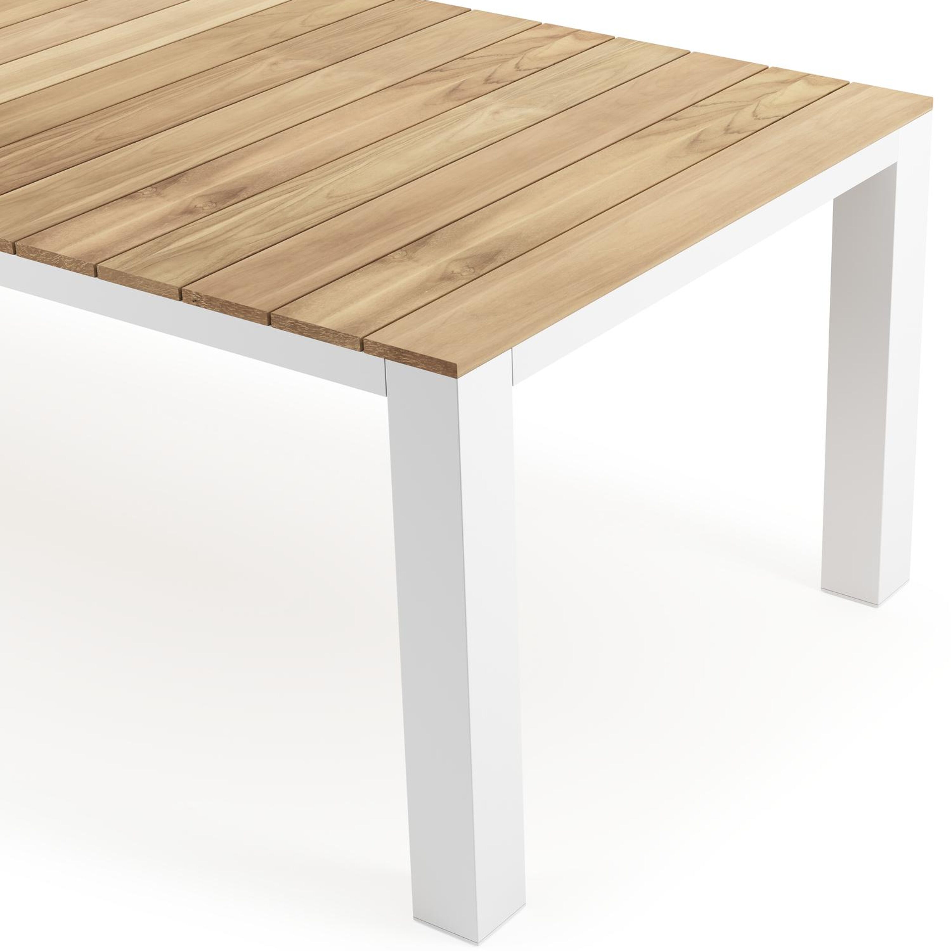 Een tafelblad uit teak staat gelijk aan bijzondere kwaliteit en natuurlijk design. Teak is een kwalitatieve houtsoort gekenmerkt door zijn hardheid. Aangezien hout leeft, kan de structuur of kleur licht anders zijn dan op het beeld weergegeven.