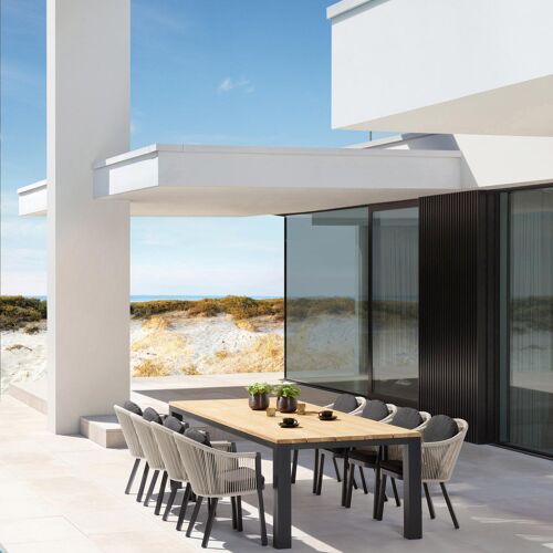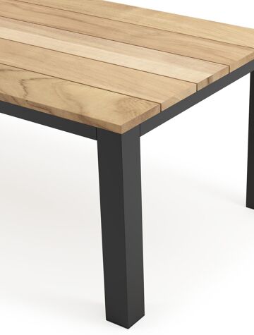 Nano tuintafel in zwart aluminium en teak - L 280 x B 110 x H 75 cm | Exterioo