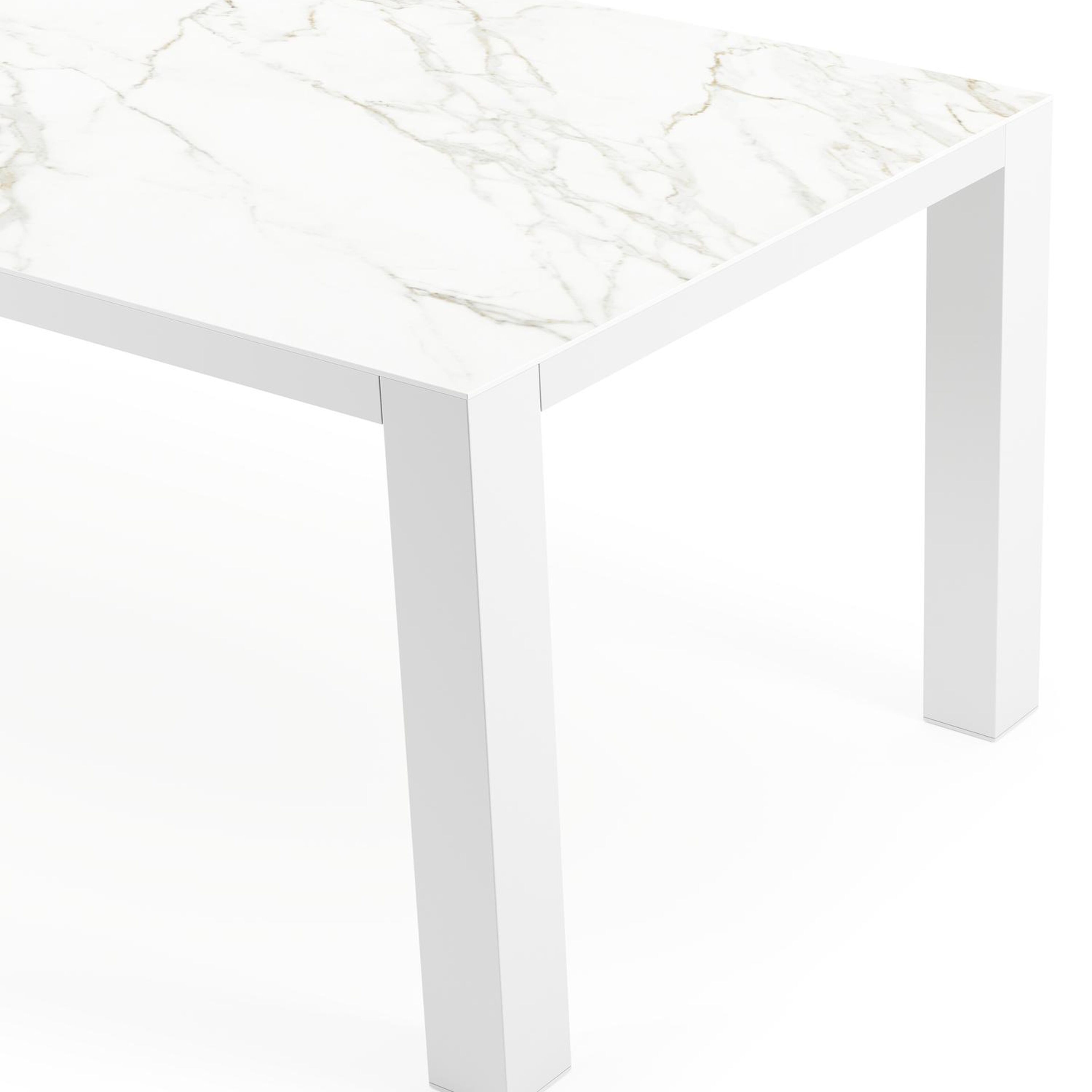 Calacatta is een tafelblad met witte basis die afgewerkt is met grijze aders voor een karakteristieke marmerlook.