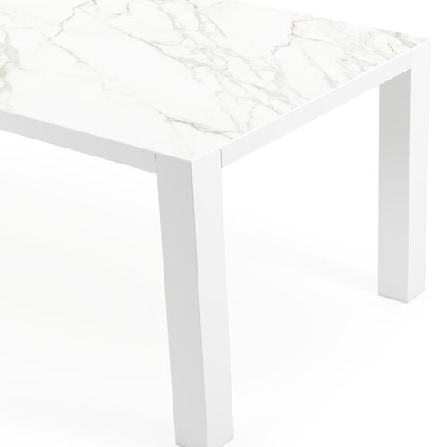 Nano tuintafel in wit aluminium en volkeramiek calacatta - L 240 x B 100 x H 75 cm | Exterioo