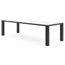 De Nano tuintafel weerspiegelt een robuuste vorm uit door de stevig blokvormig poten. Het strakke ontwerp past daarom perfect in een hedendaagse of moderne stijl.