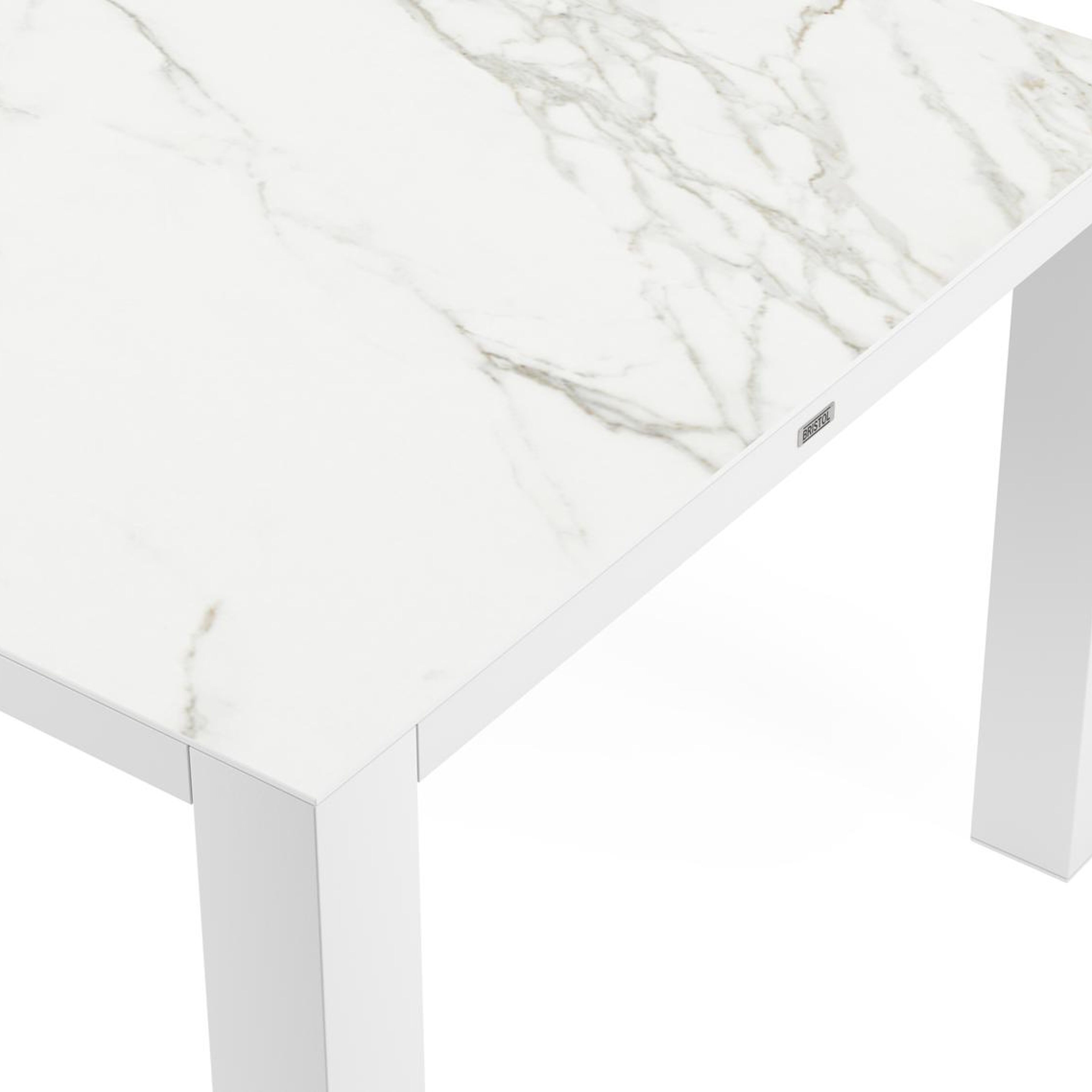 Calacatta is een tafelblad met witte basis die afgewerkt is met grijze aders voor een karakteristieke marmerlook.