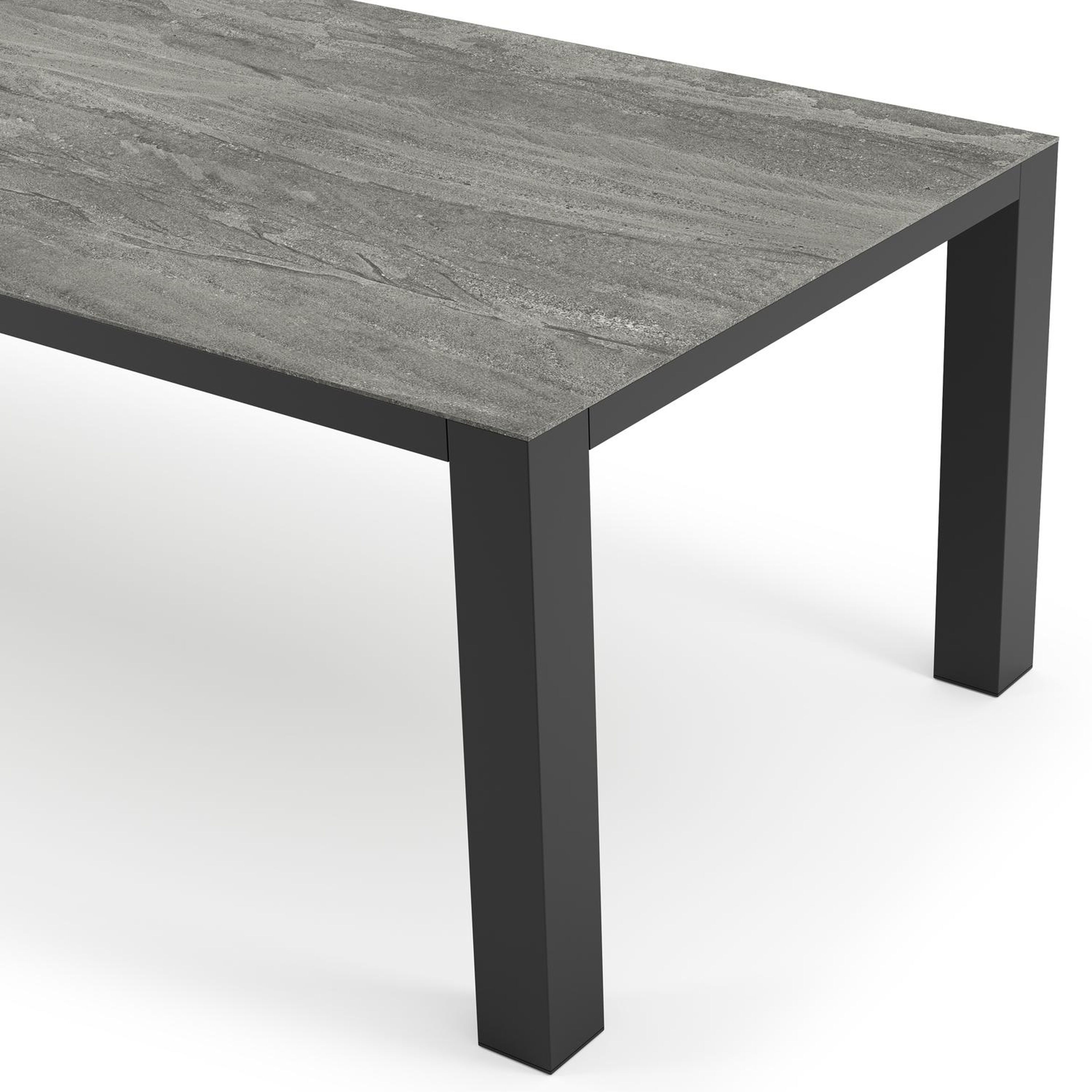 Het Aspen Grey tafelblad is een mat blad met grijszwarte kleurschakeringen die diepte en karakter toevoegen aan je tafel.