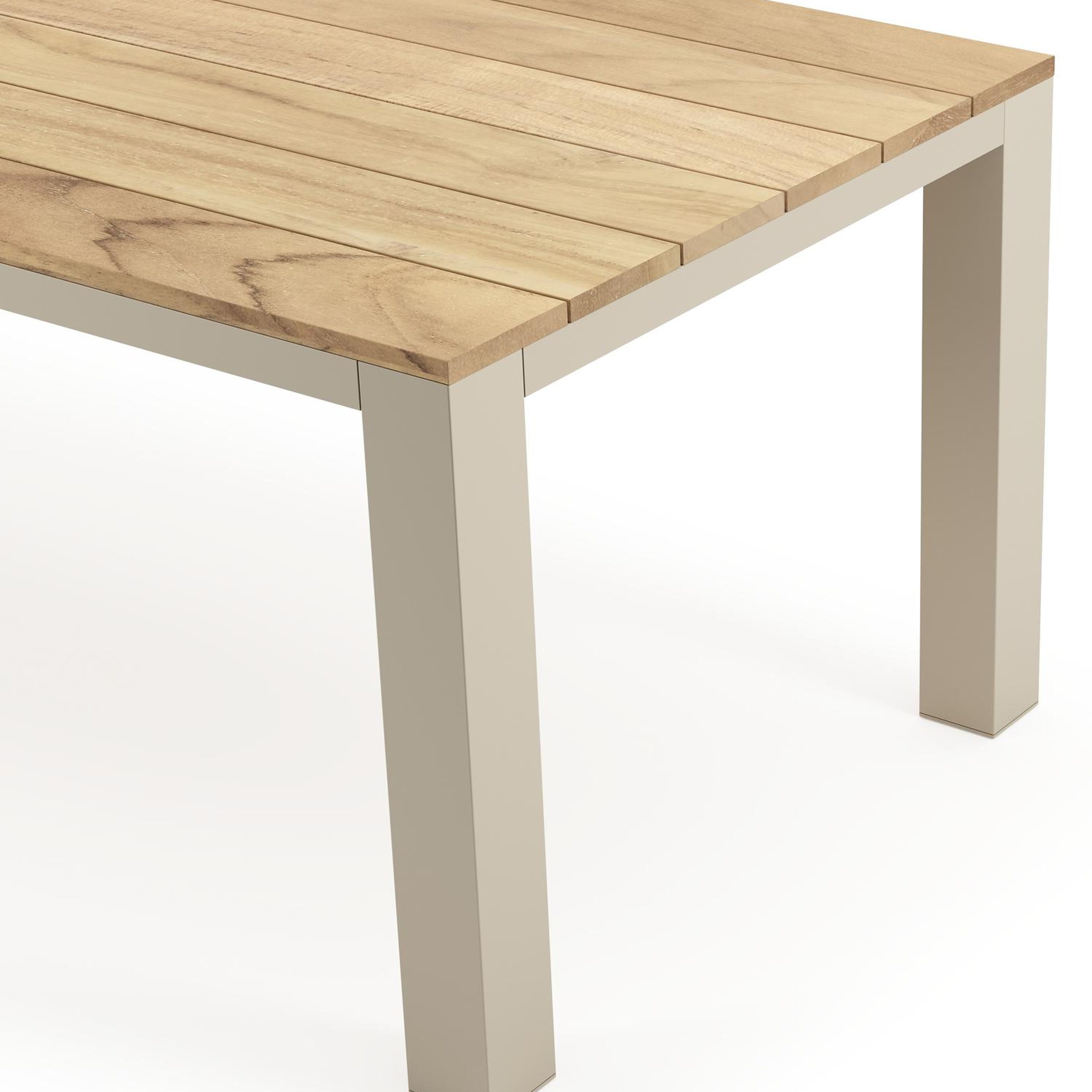 Een tafelblad uit teak staat gelijk aan bijzondere kwaliteit en natuurlijk design. Teak is een kwalitatieve houtsoort gekenmerkt door zijn hardheid. Aangezien hout leeft, kan de structuur of kleur licht anders zijn dan op het beeld weergegeven.