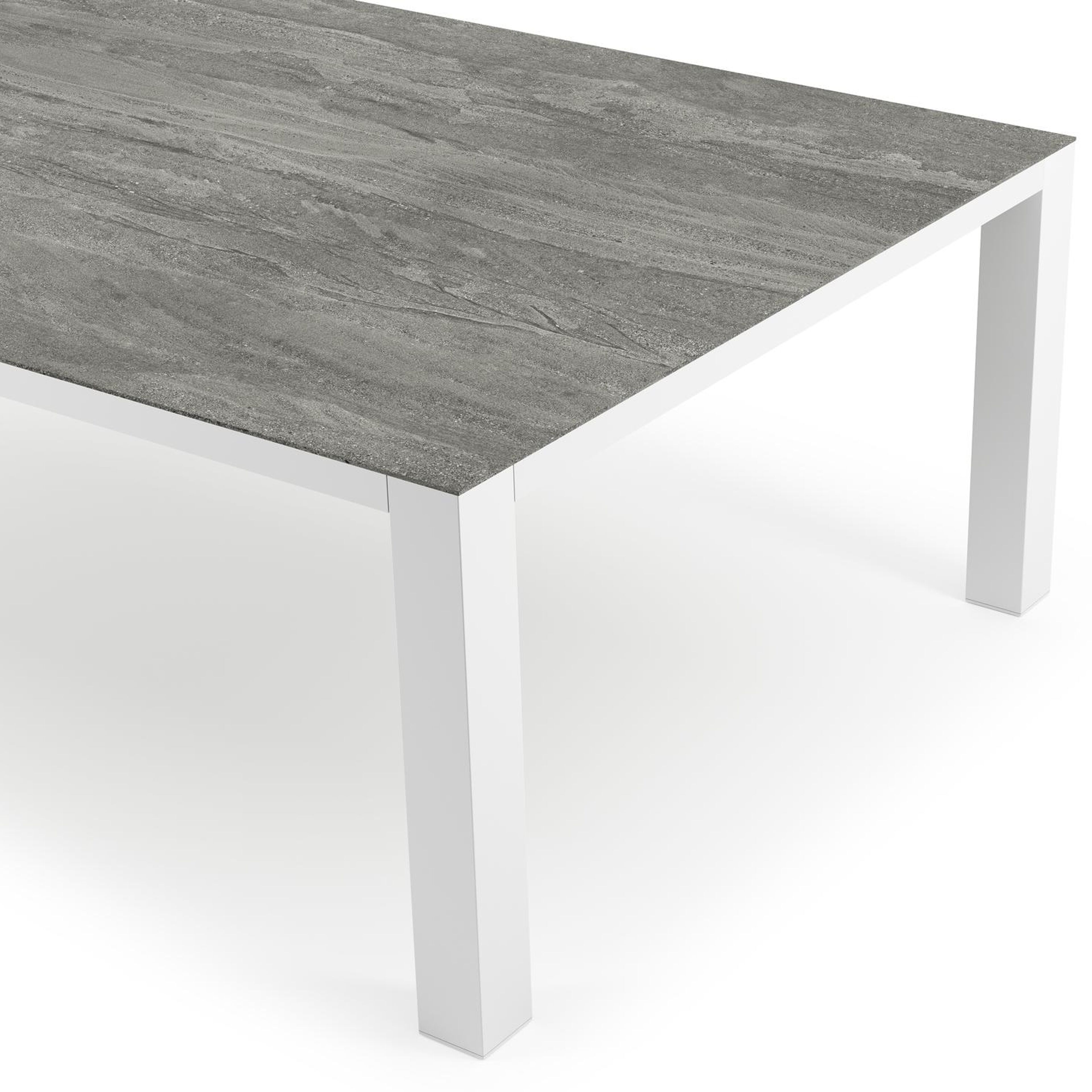 Nano tuintafel in wit aluminium en volkeramiek aspen grey - L 240 x B 148 x H 75 cm | Exterioo tuinmeubelen