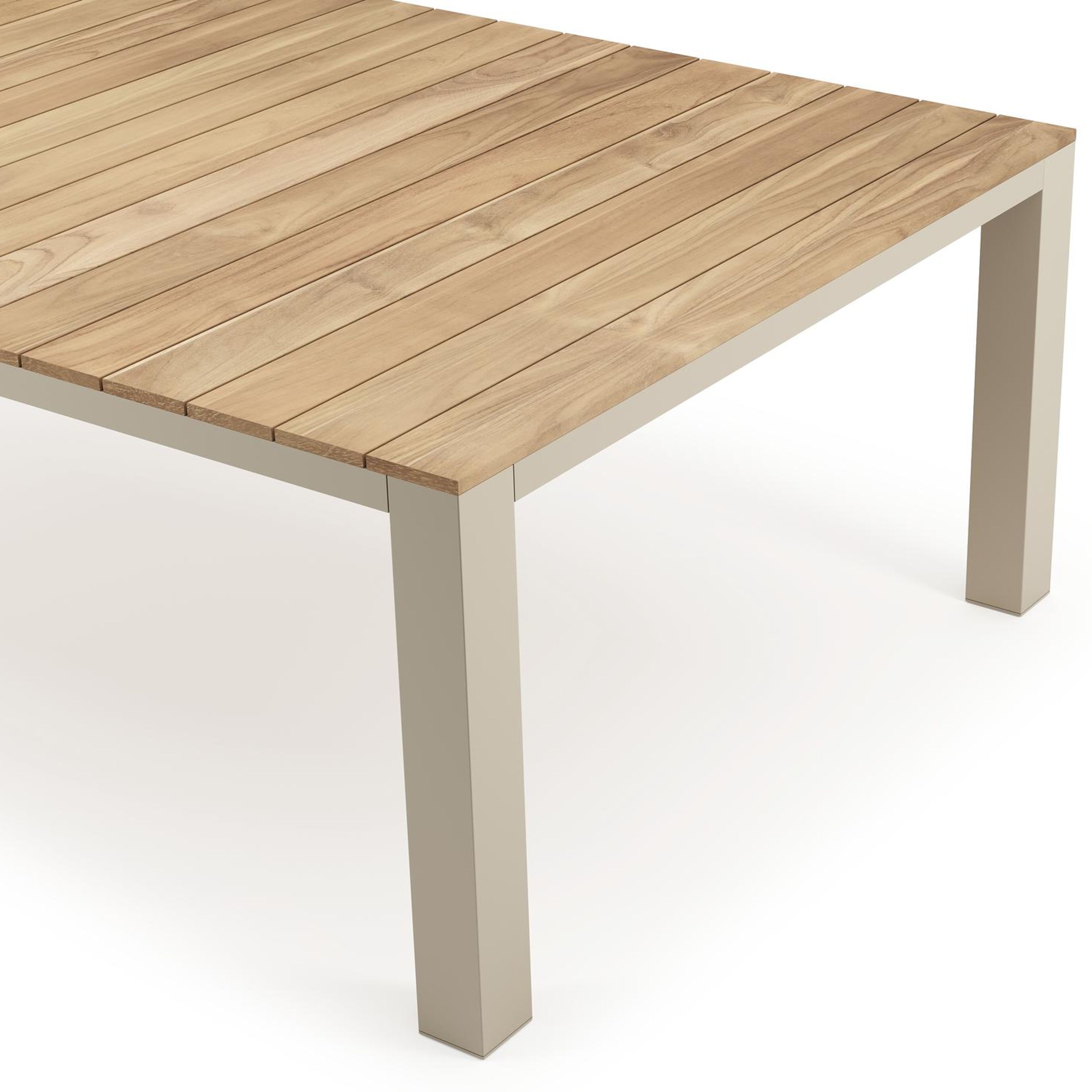 Nano XL tuintafel rechthoekig in beige aluminium en teak L 240 x B 148 x H 75 cm | Exterioo tuinmeubelen