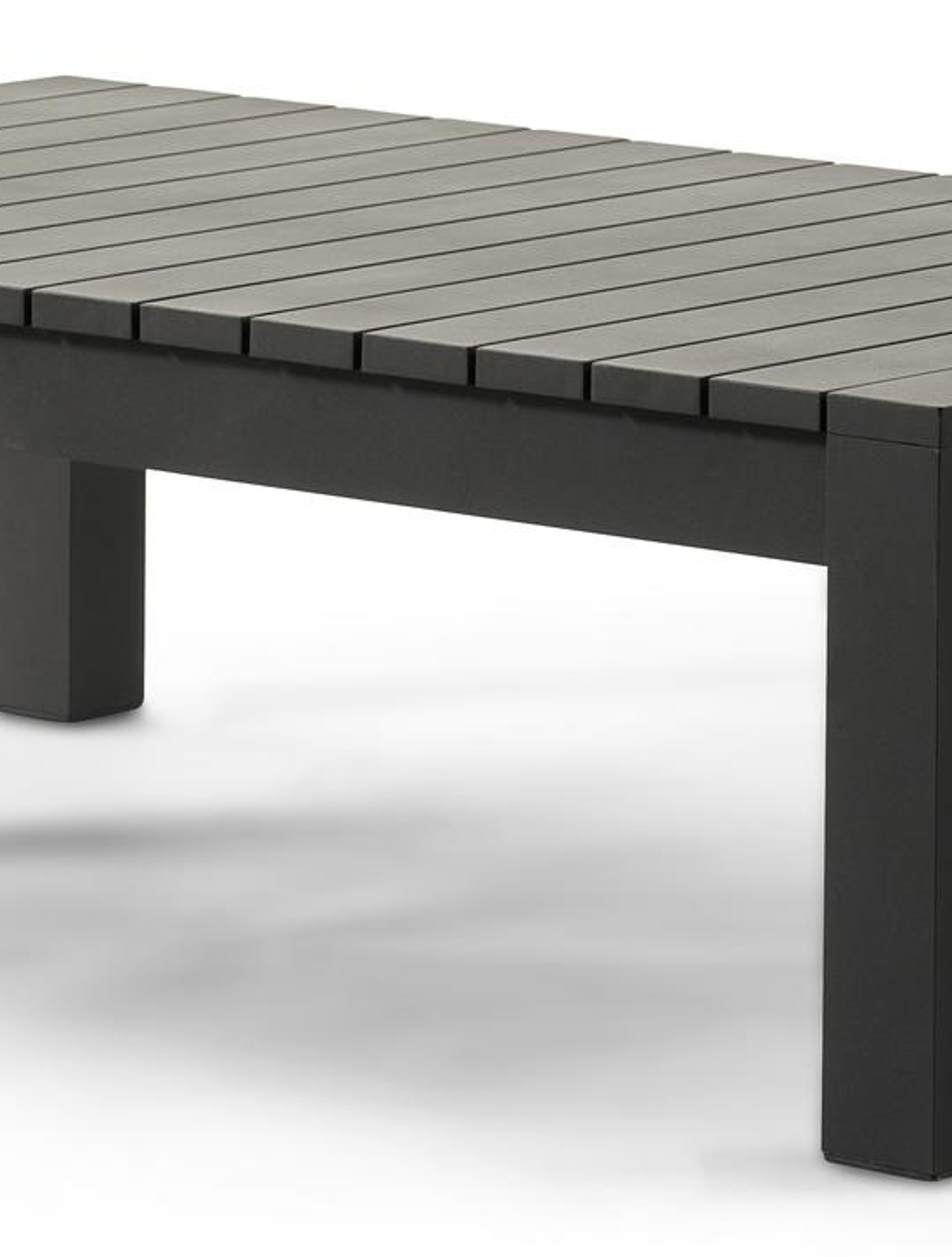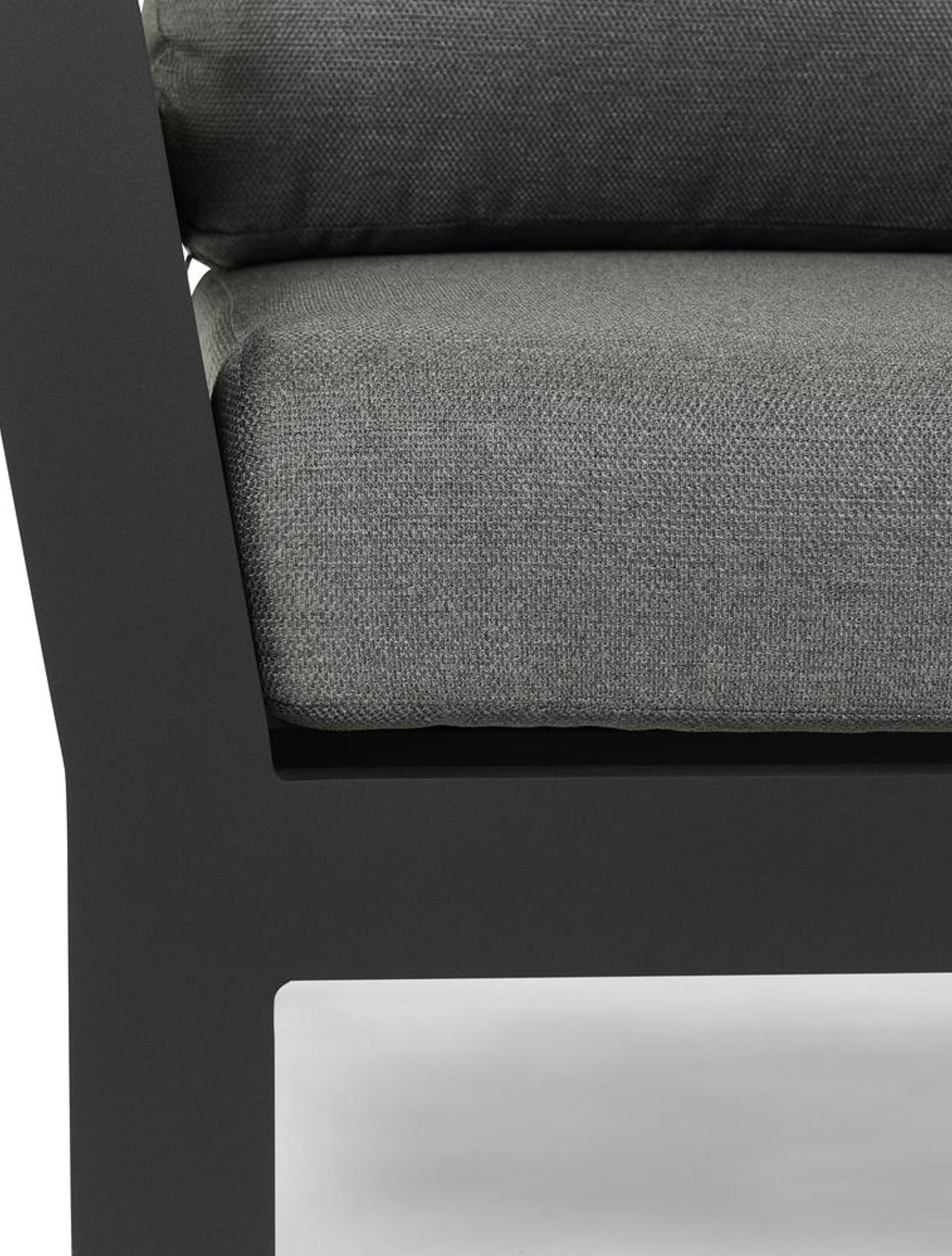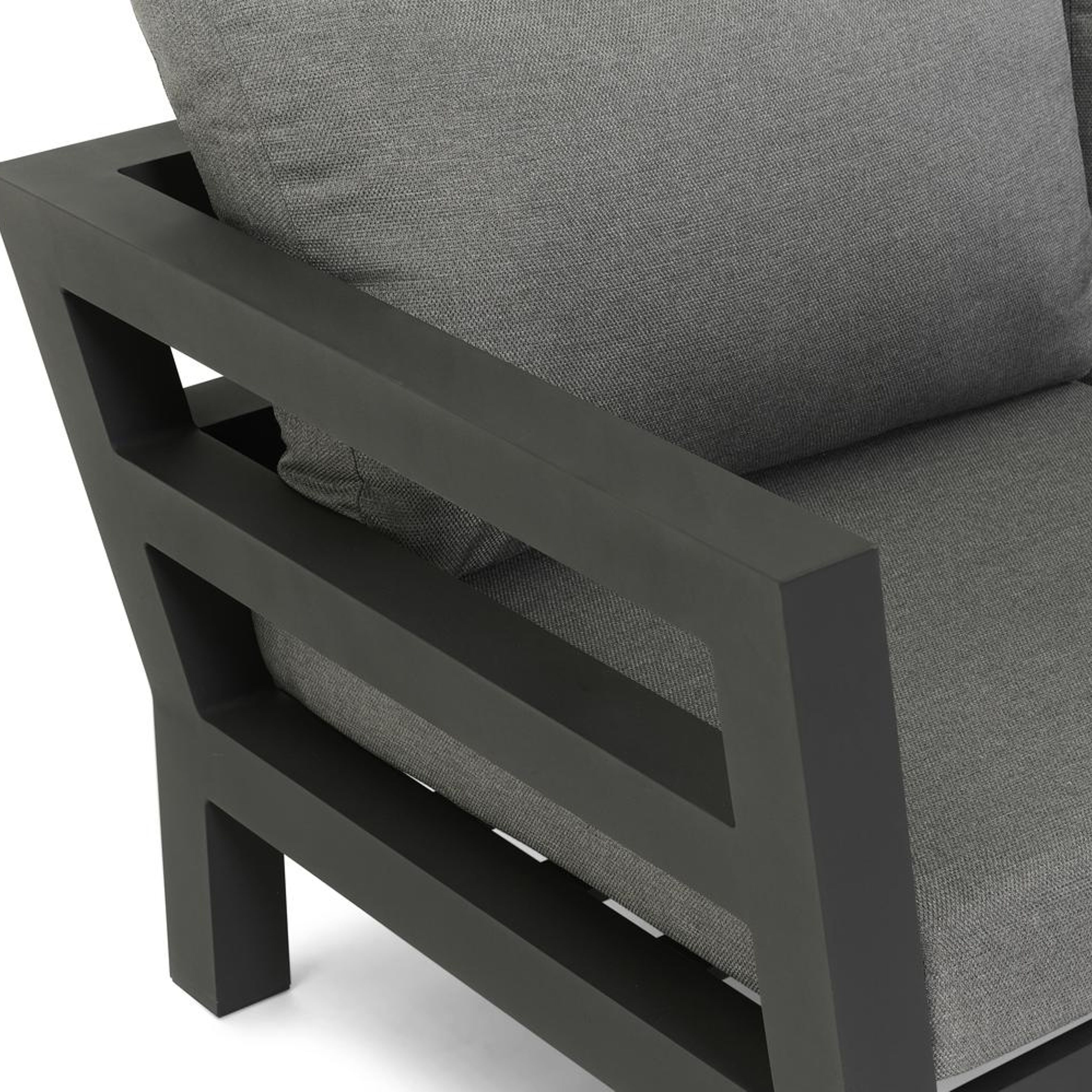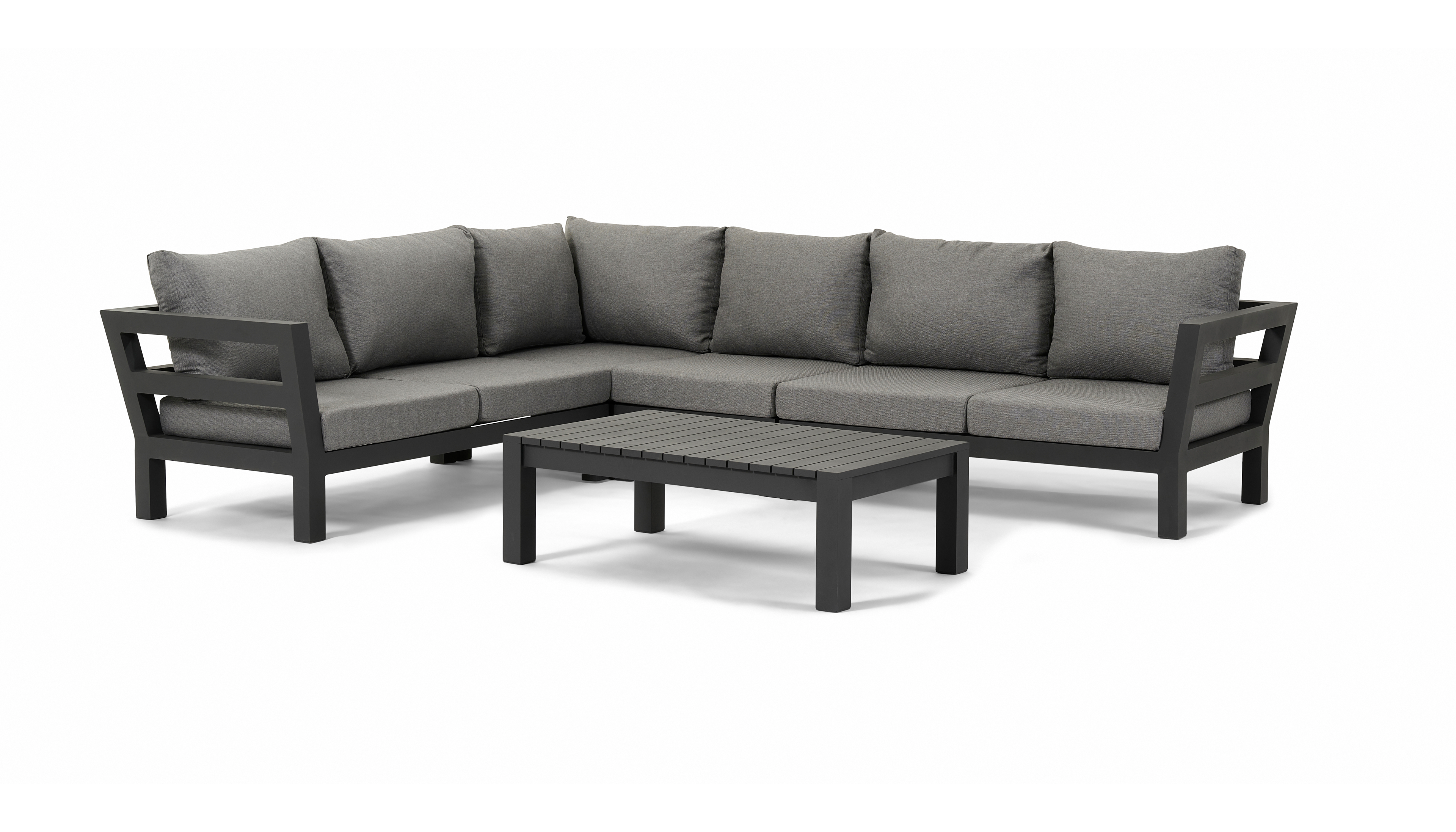 Occaro loungehoek in zwart aluminium met grijs weather+ softtouch kussens en loungetafel | Exterioo tuinmeubelen