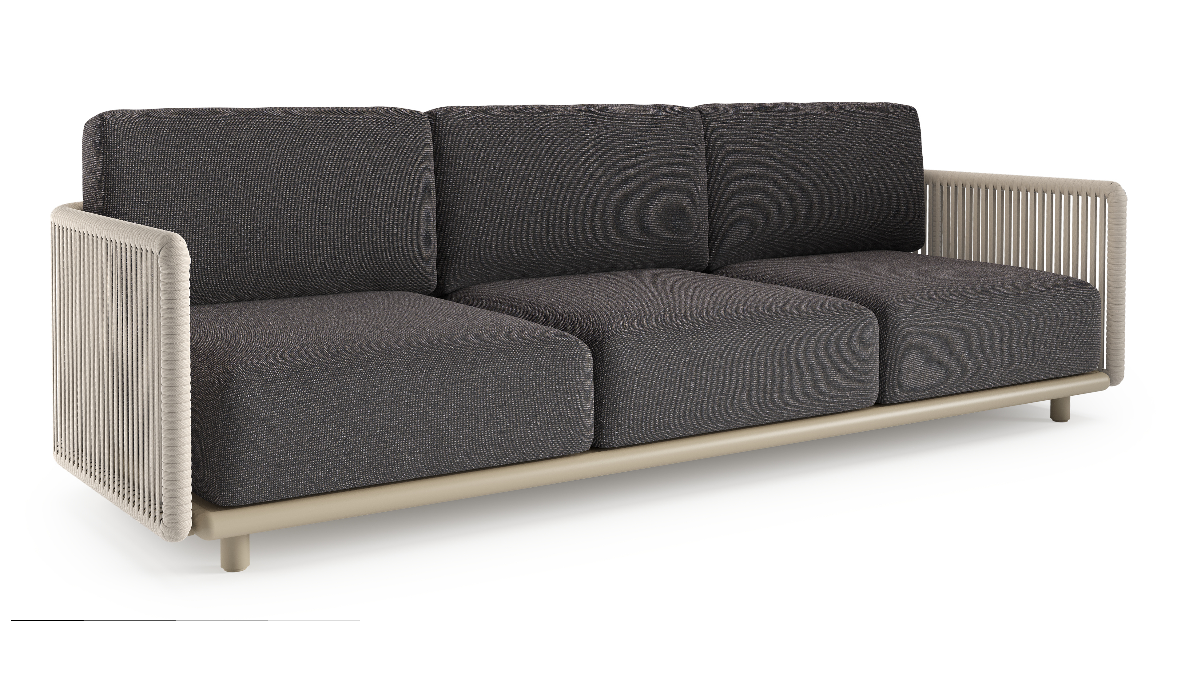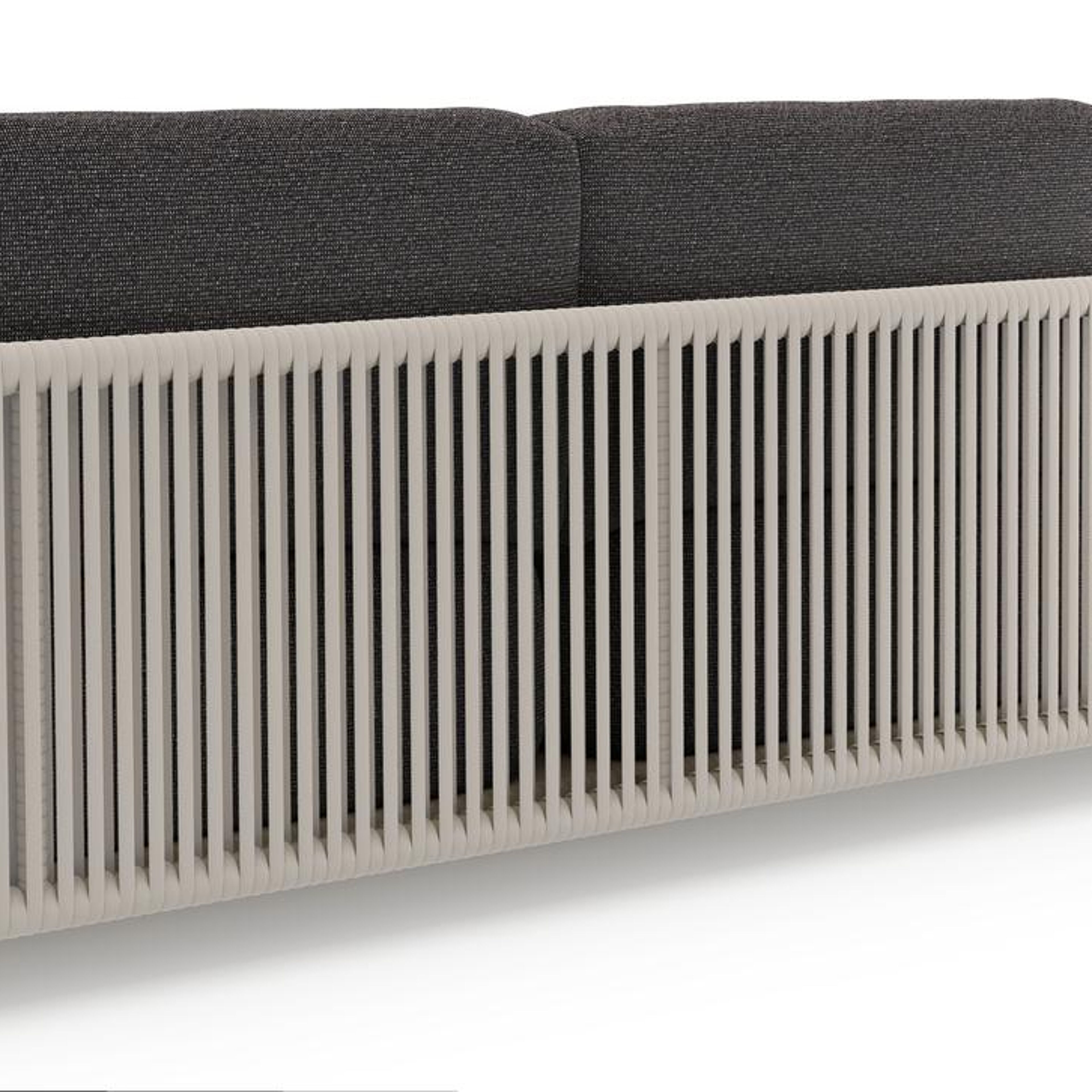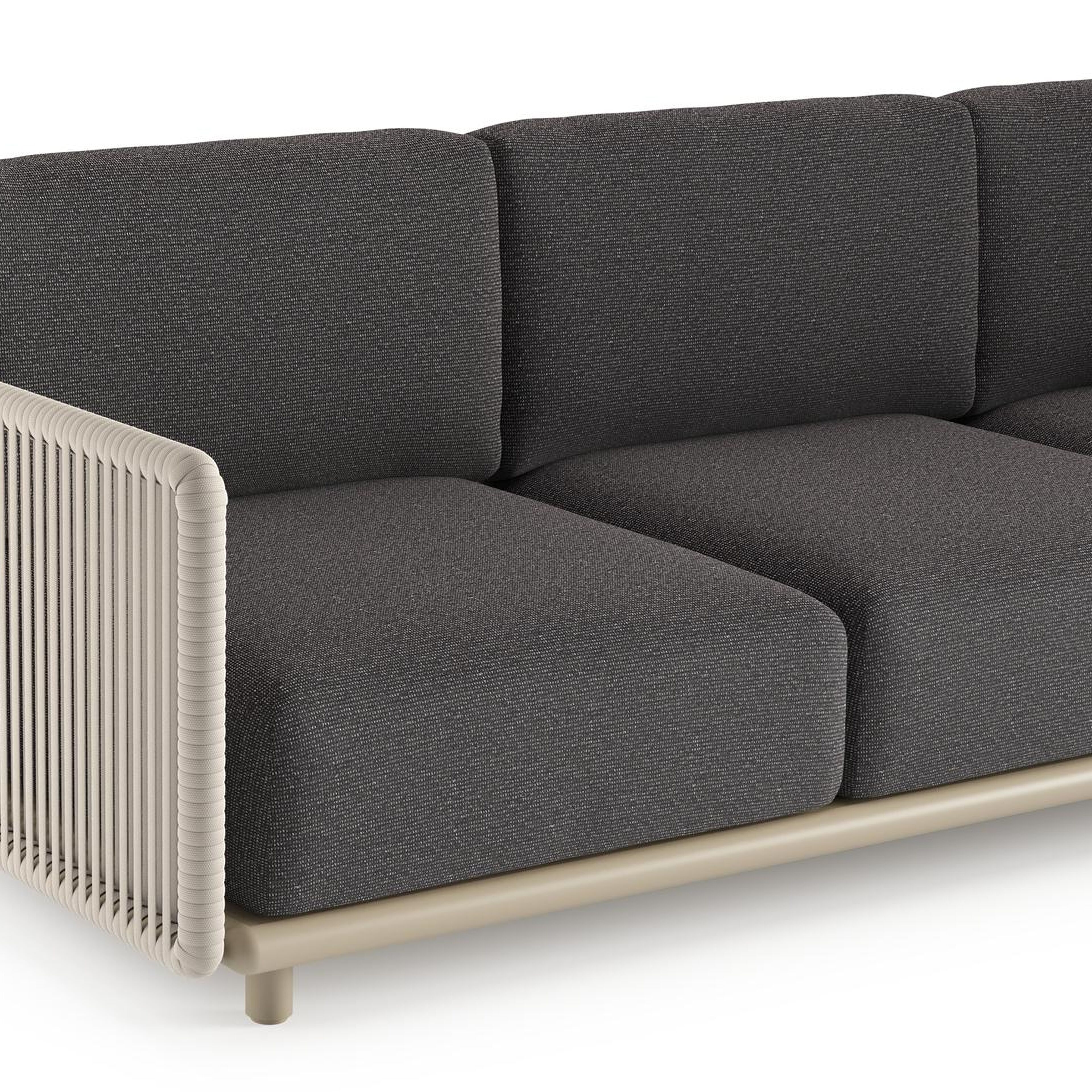 Organo loungebank in beige aluminium en beige verticaal geweven luxe vlakke rope met firenze tunder all weather Solica kussen | Exterioo tuinmeubelen