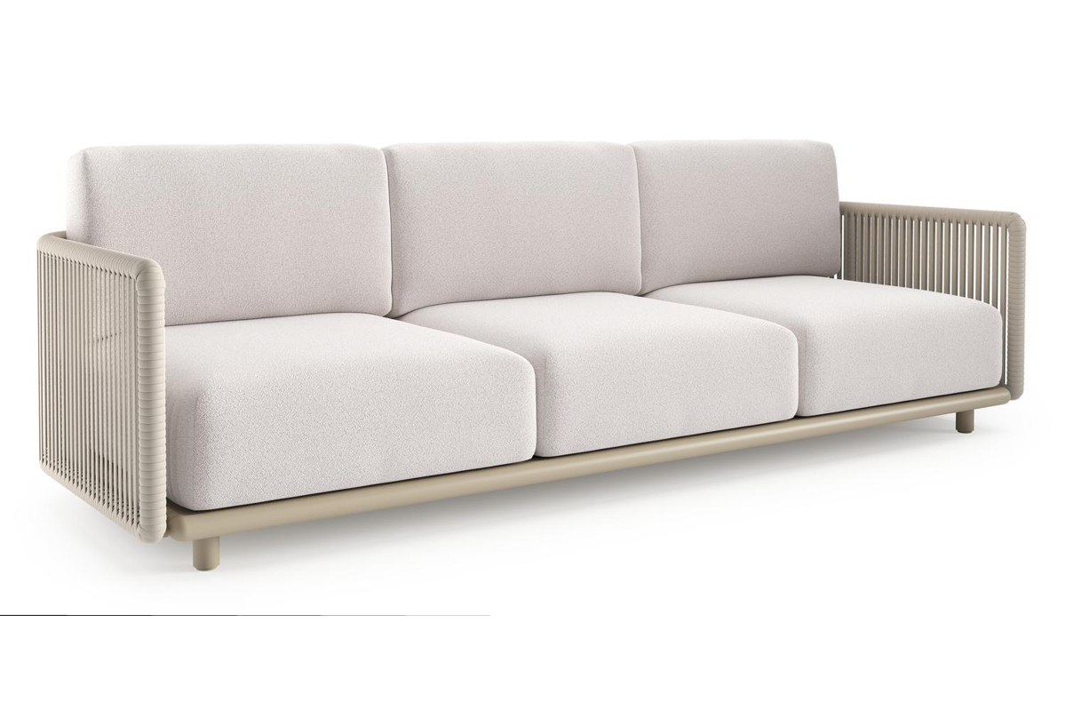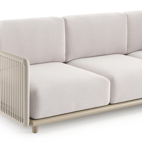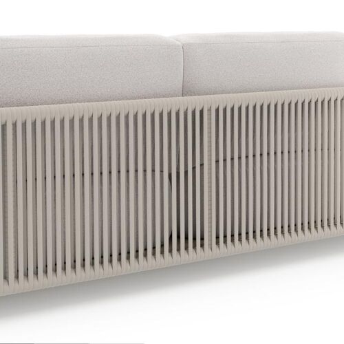 Organo loungebank in beige aluminium en beige verticaal geweven luxe vlakke rope met ego eggshell all weather Solica kussen | Exterioo