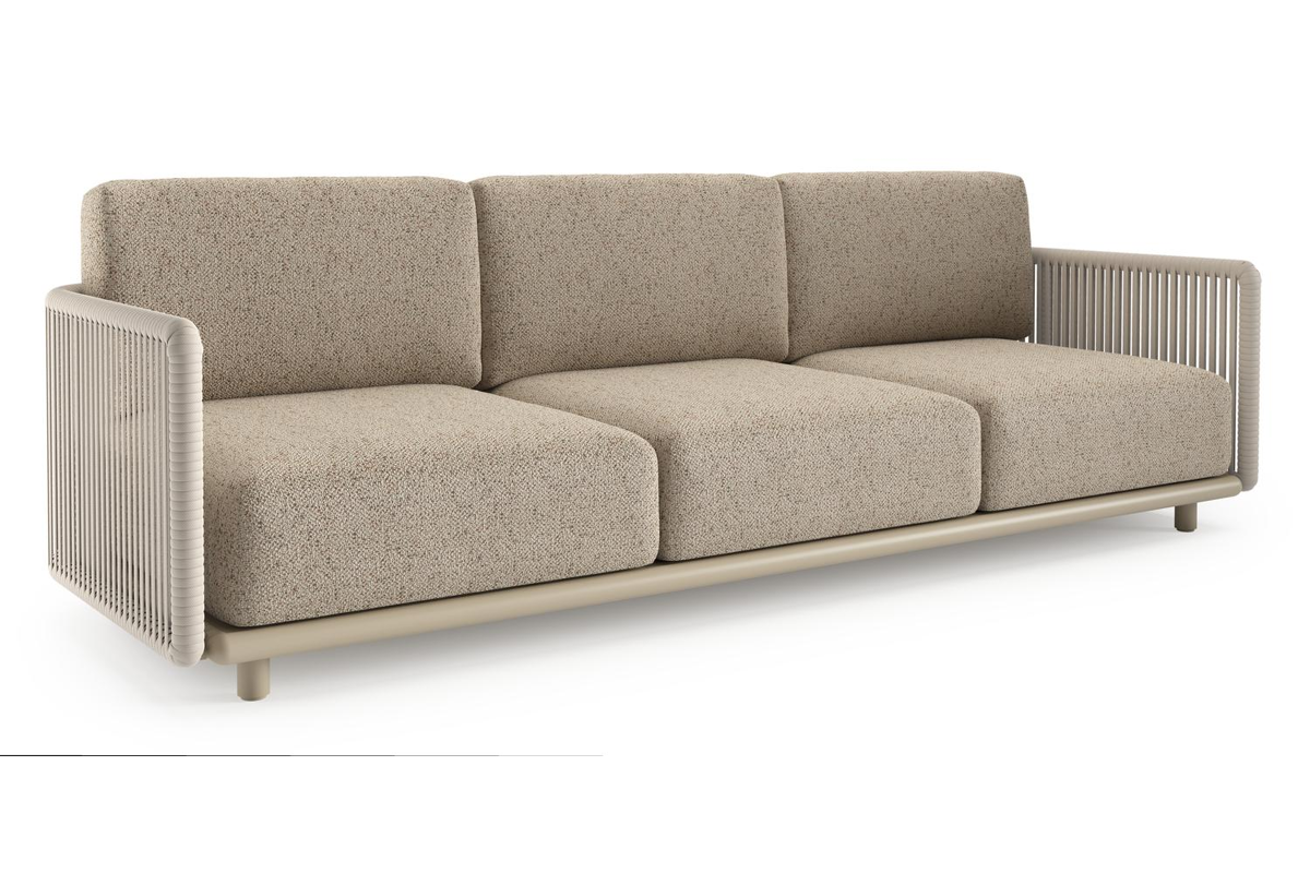 Organo loungebank in beige aluminium en beige verticaal geweven luxe vlakke rope met bora jungle all weather Cosytica kussen | Exterioo