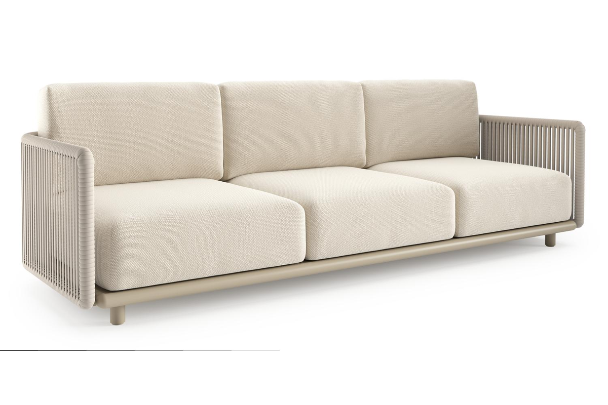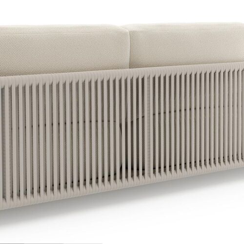 Organo loungebank in beige aluminium en beige verticaal geweven luxe vlakke rope met althea off white all weather Cosytica kussen | Exterioo