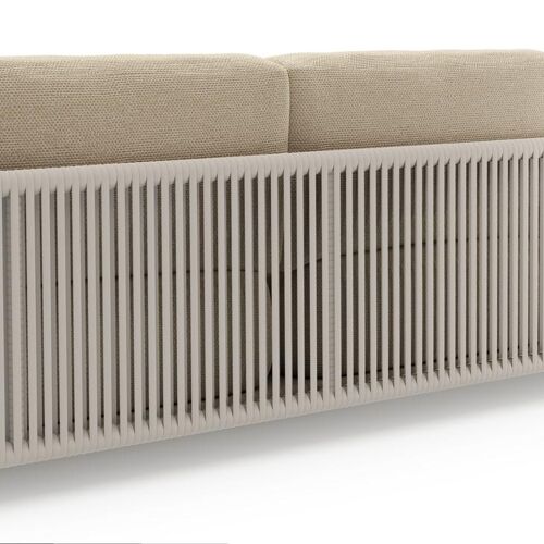 Organo loungebank in beige aluminium en beige verticaal geweven luxe vlakke rope met althea camel all weather Cosytica kussen | Exterioo