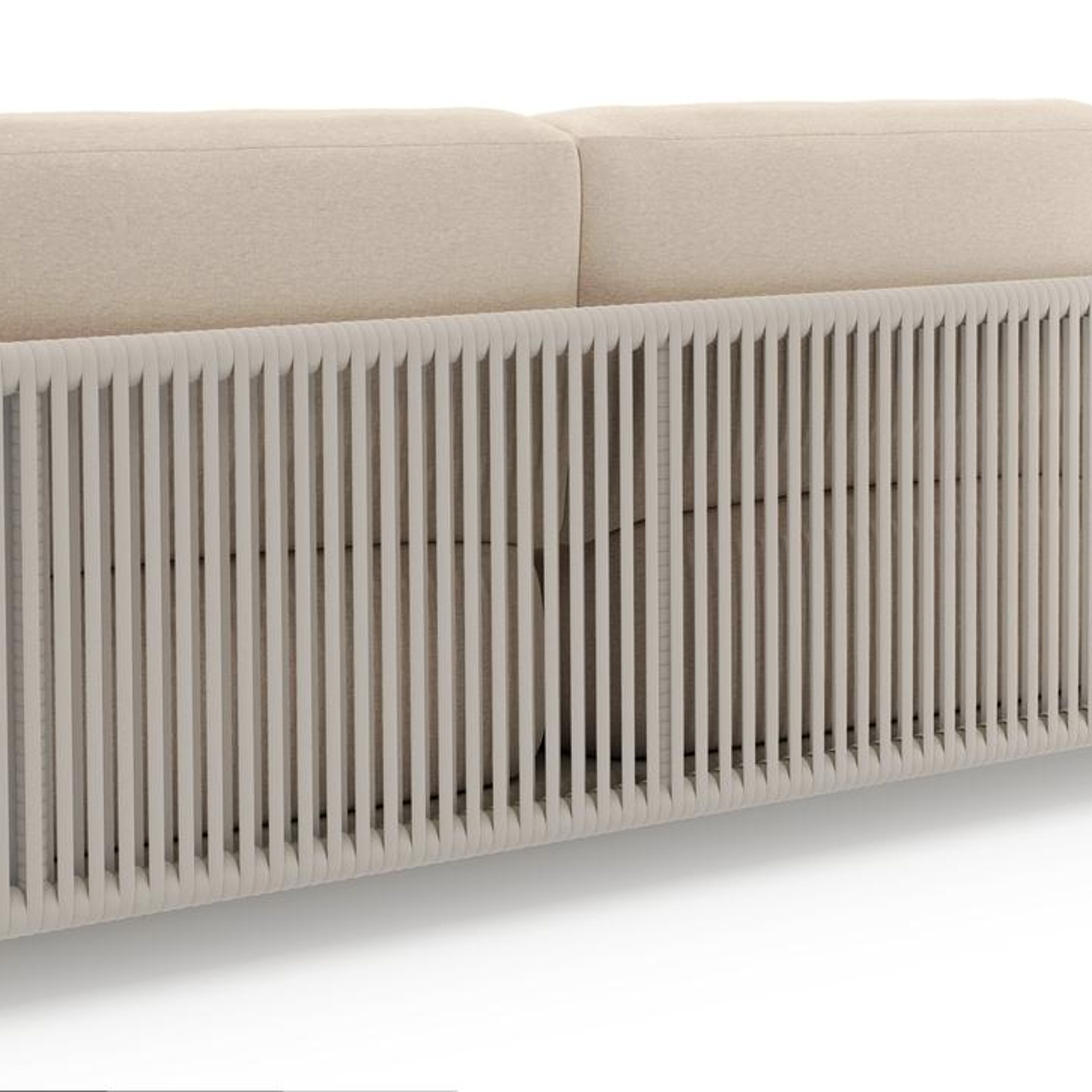 Organo loungebank in beige aluminium en beige verticaal geweven luxe vlakke rope met heritage papyrus all weather Sunbrella® luxe kussen | Exterioo tuinmeubelen