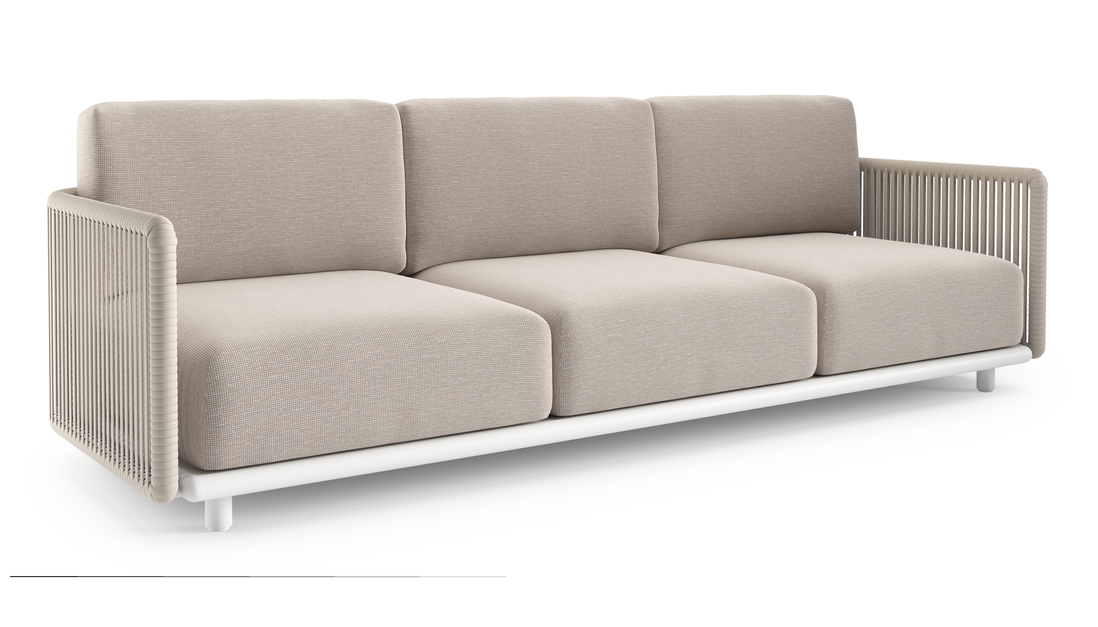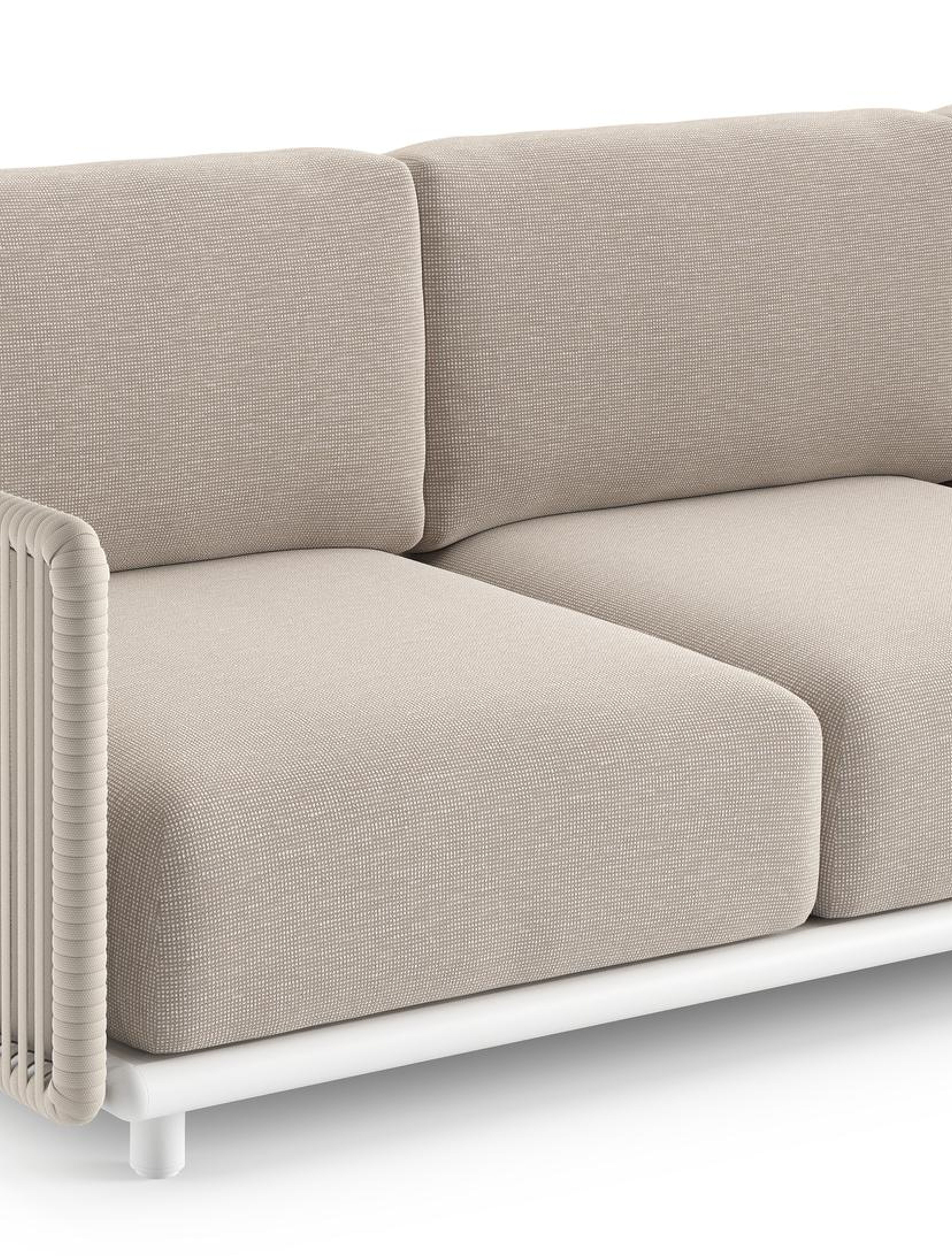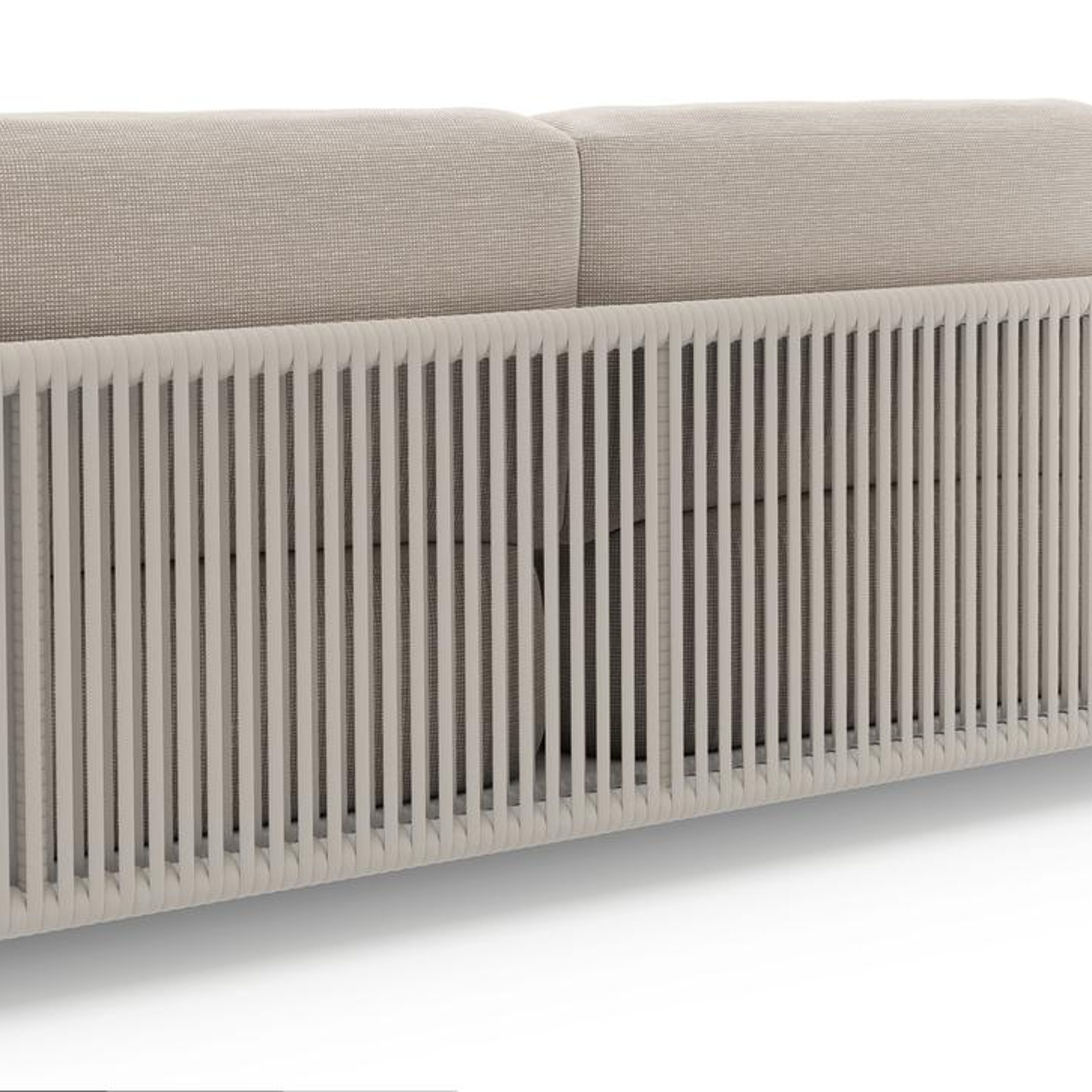 Organo loungebank in wit aluminium en beige verticaal geweven luxe vlakke rope met slow farafra all weather Sunbrella® luxe kussen | Exterioo tuinmeubelen