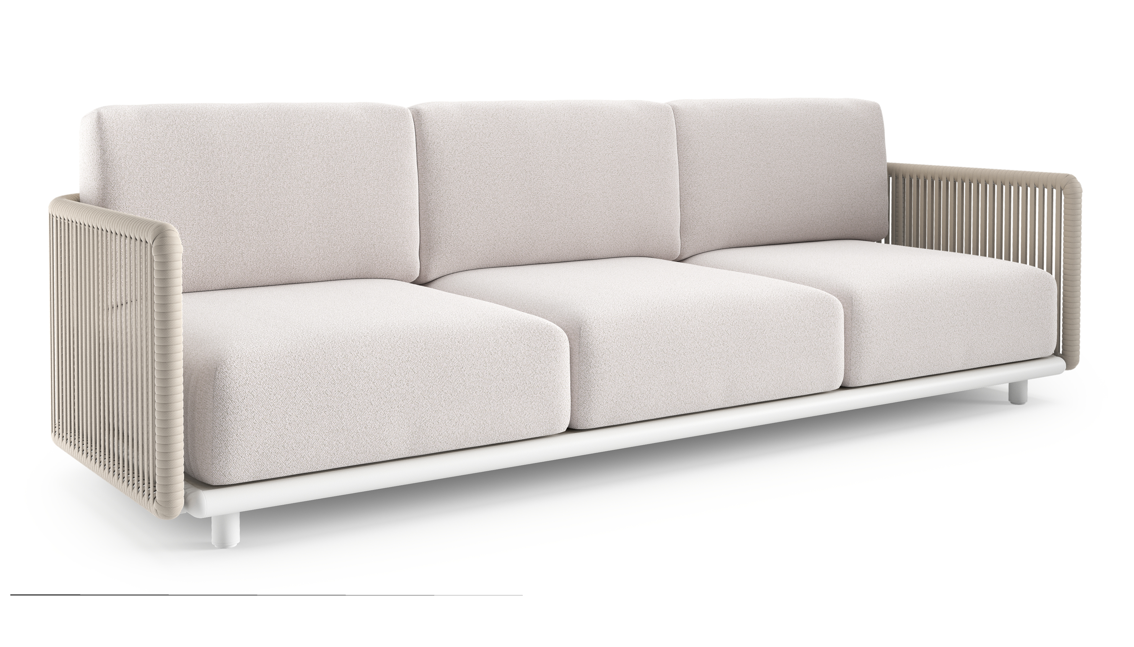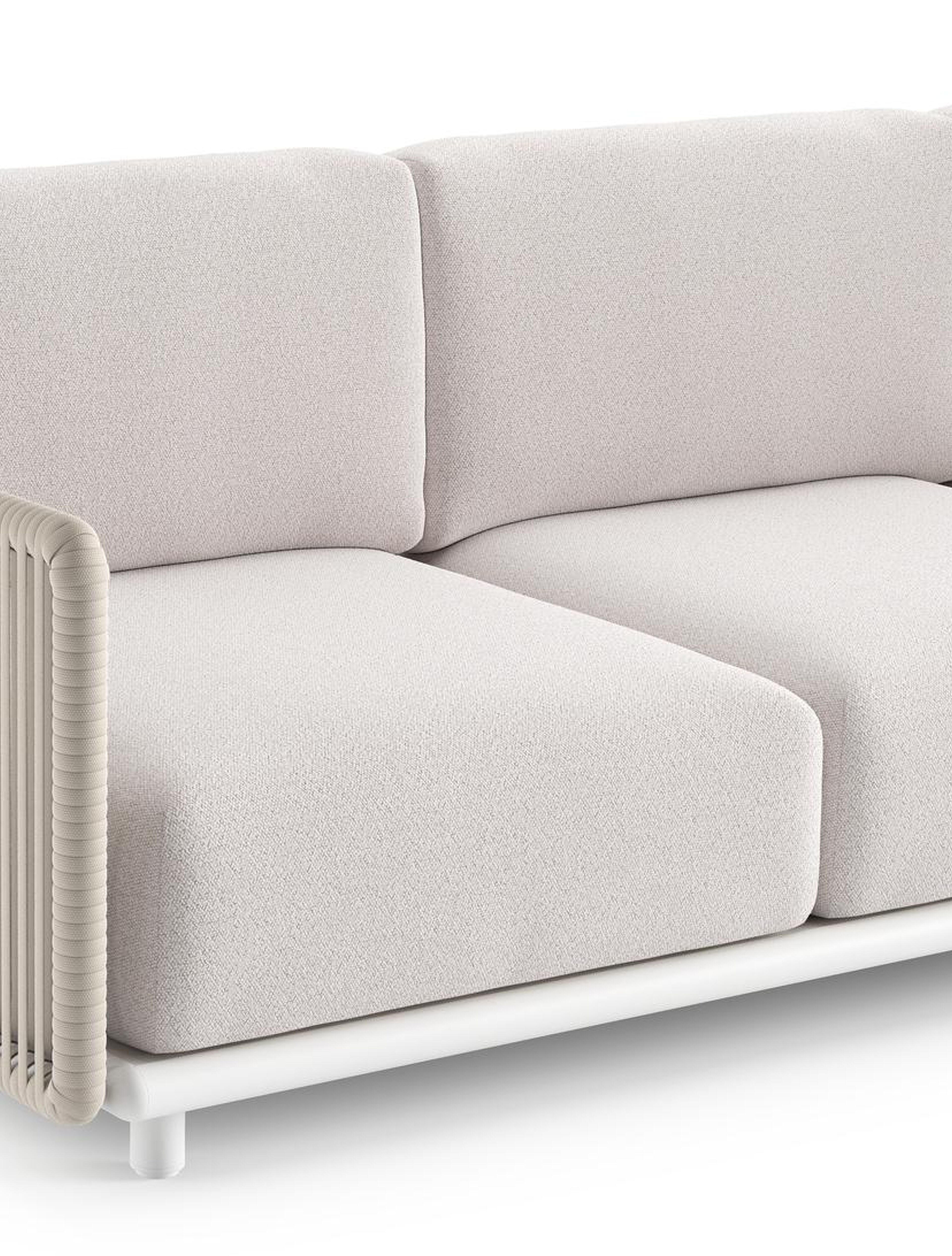 Organo loungebank in wit aluminium en beige verticaal geweven luxe vlakke rope met ego eggshell all weather Solica kussen | Exterioo tuinmeubelen