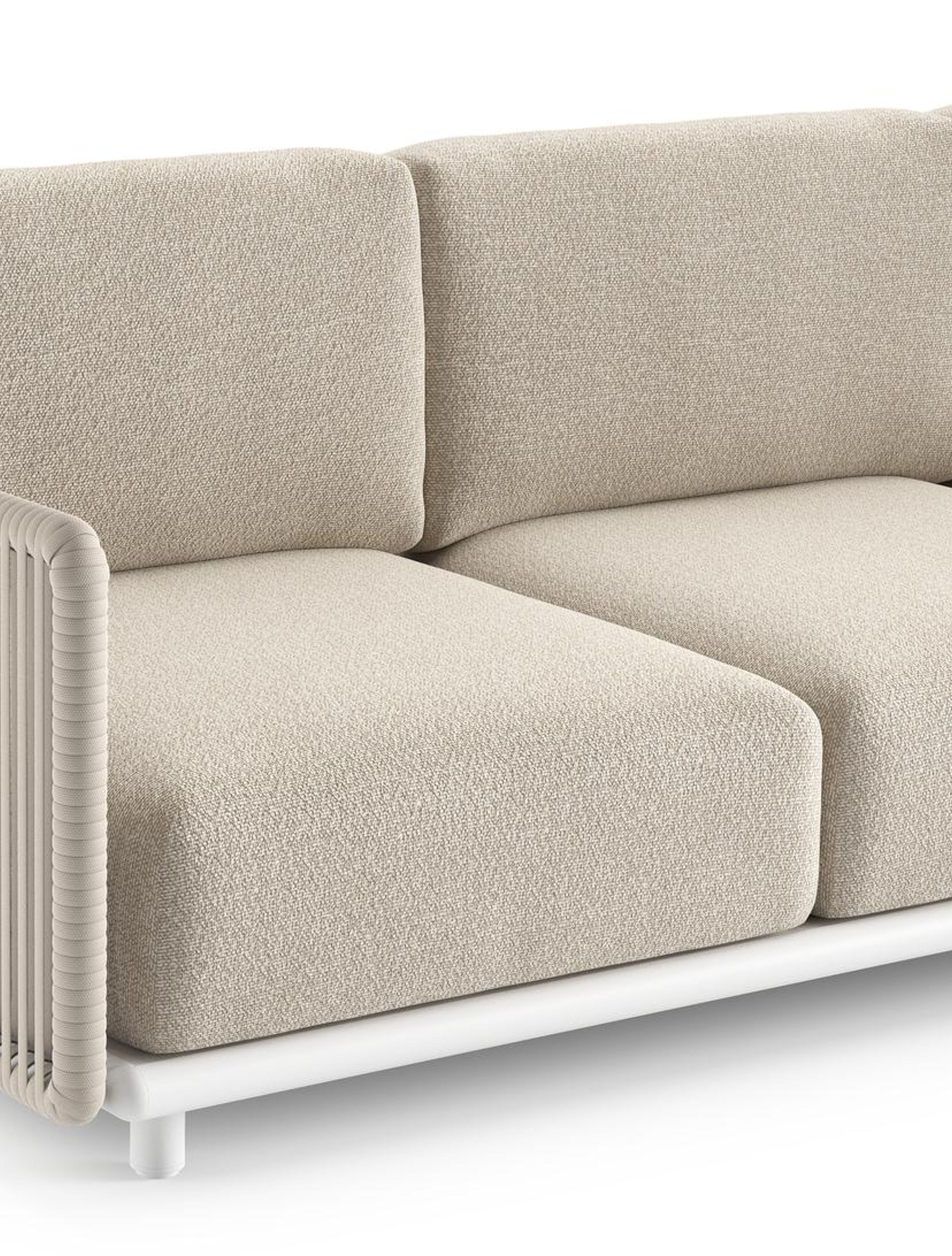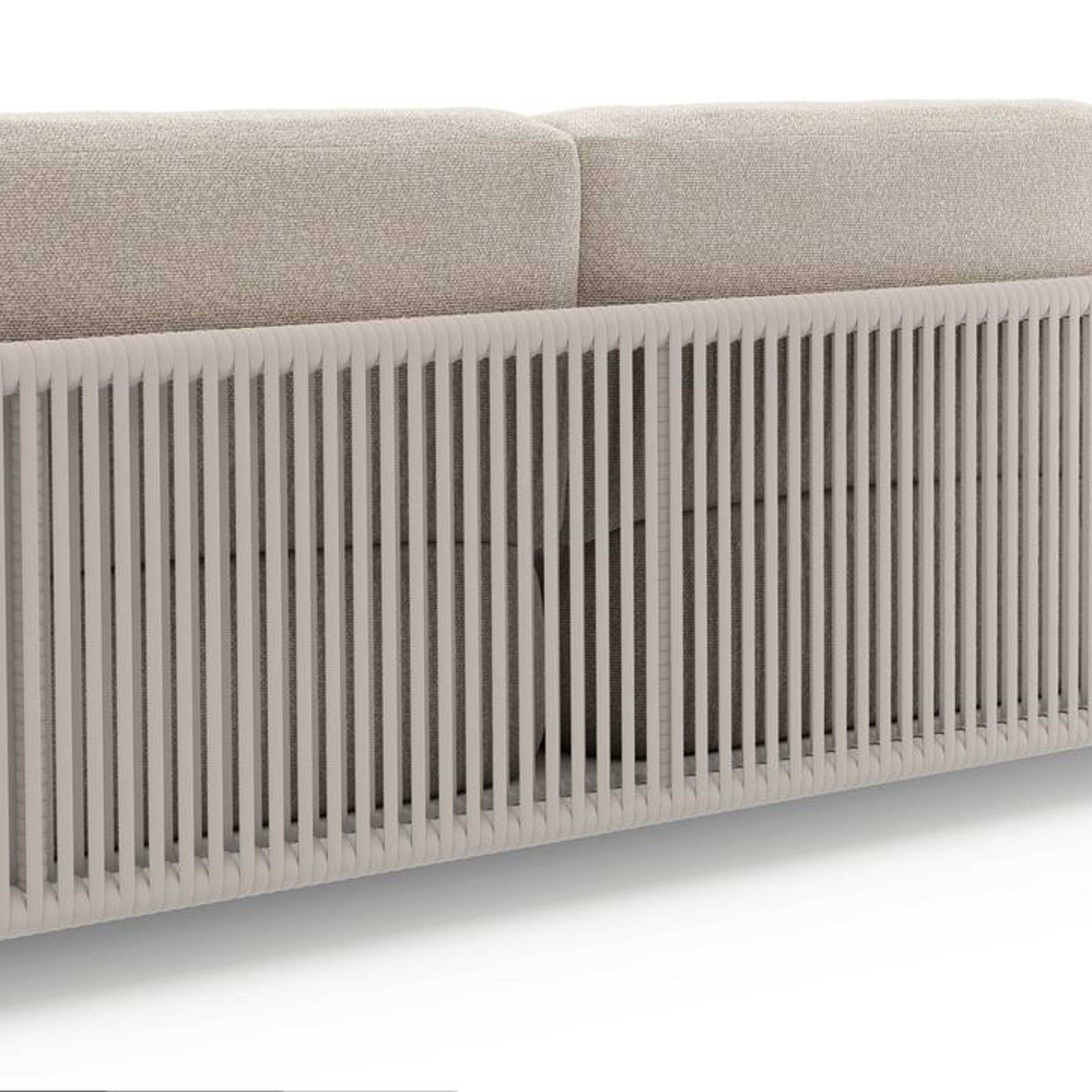 Organo loungebank in wit aluminium en beige verticaal geweven luxe vlakke rope met marbella ecru all weather Cosytica kussen | Exterioo tuinmeubelen