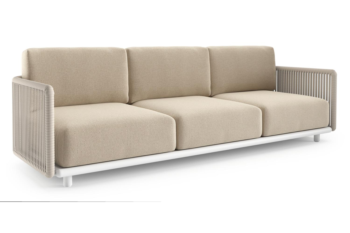 Organo loungebank in wit aluminium en beige verticaal geweven luxe vlakke rope met althea chalk all weather Cosytica kussen | Exterioo