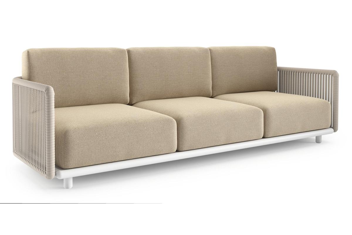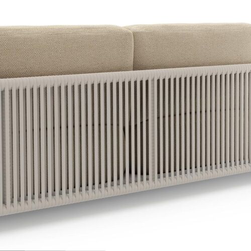 Organo loungebank in wit aluminium en beige verticaal geweven luxe vlakke rope met althea camel all weather Cosytica kussen | Exterioo