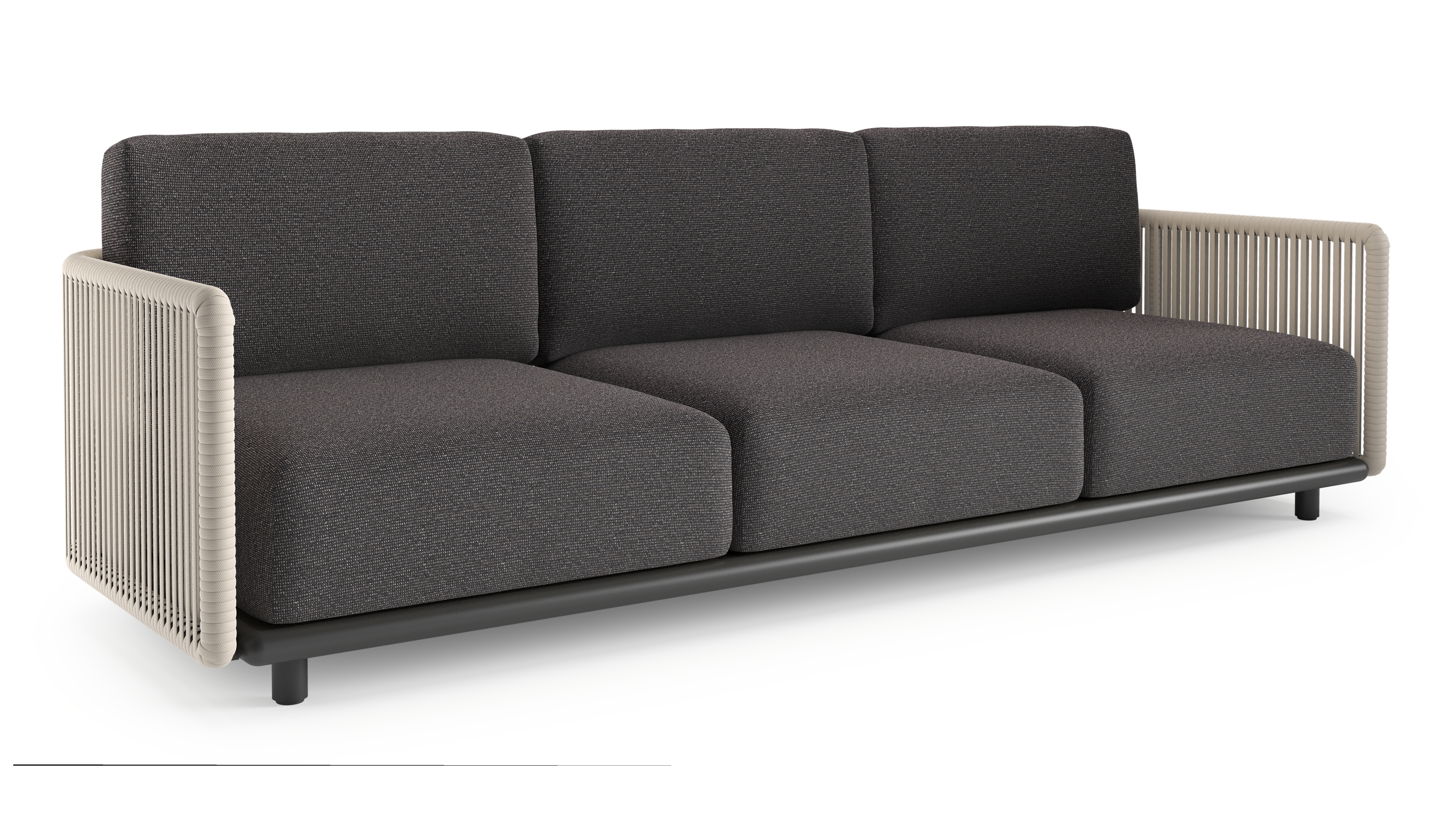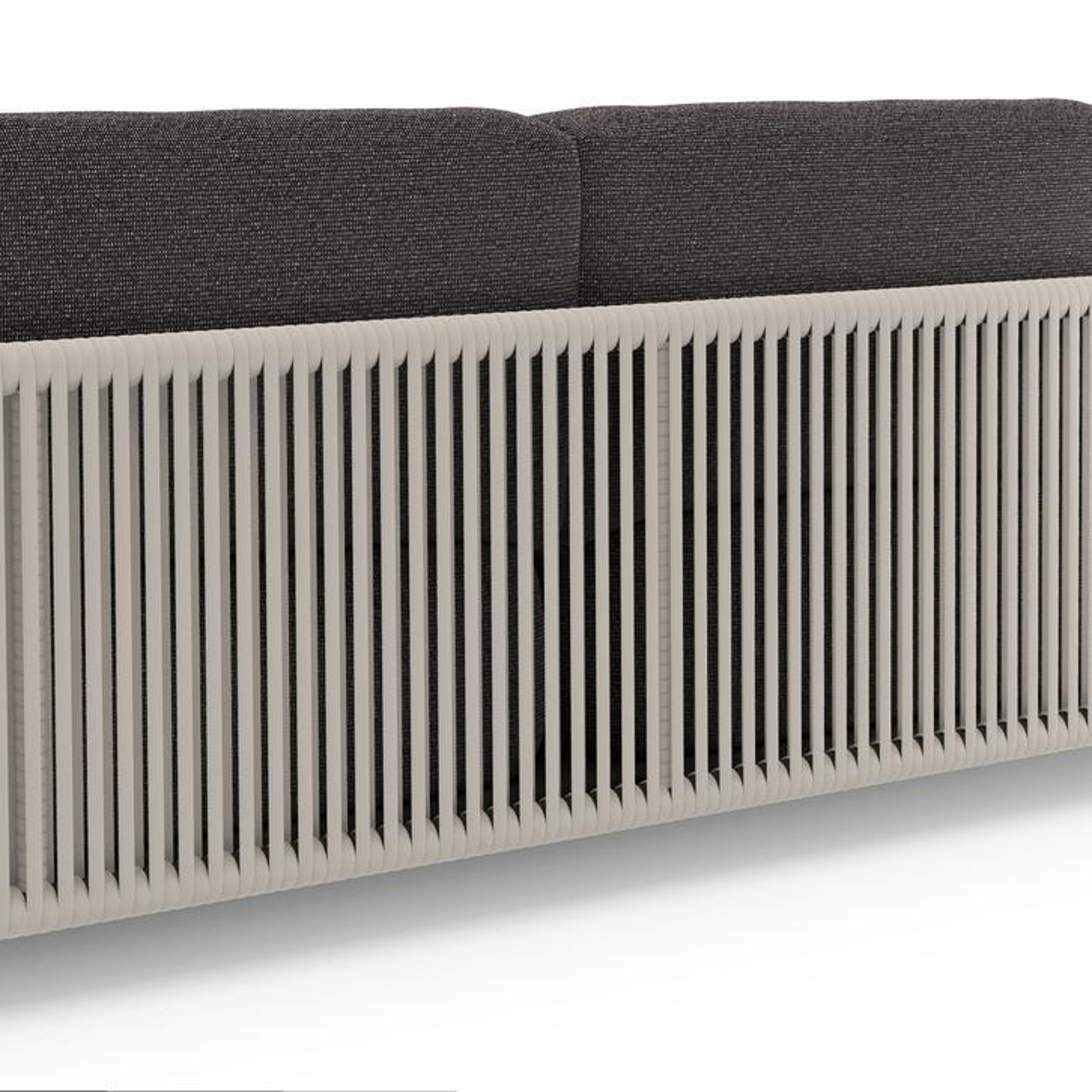 Organo loungebank in zwart aluminium en beige verticaal geweven luxe vlakke rope met firenze tunder all weather Solica kussen | Exterioo tuinmeubelen