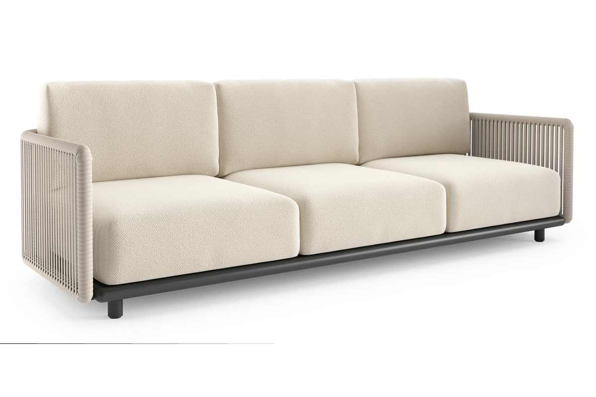 Organo loungebank in zwart aluminium en beige verticaal geweven luxe vlakke rope met althea off white all weather Cosytica kussen | Exterioo