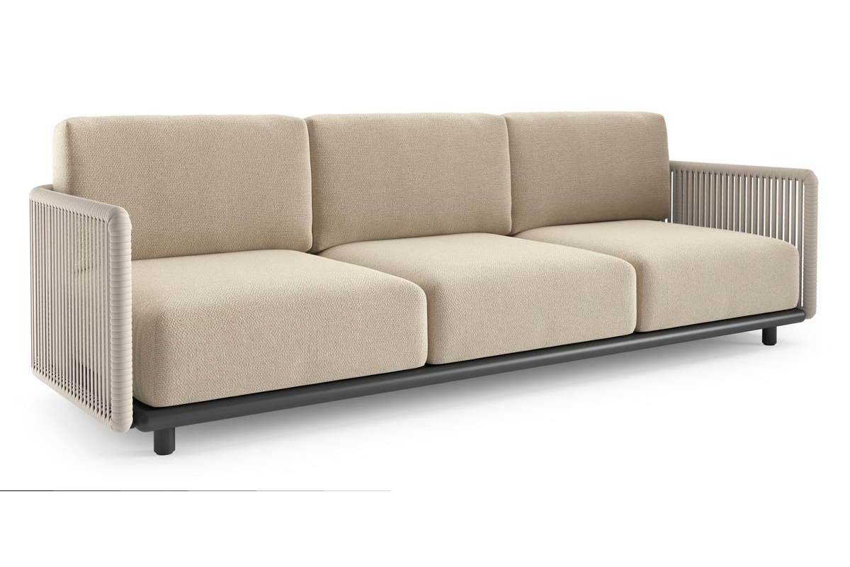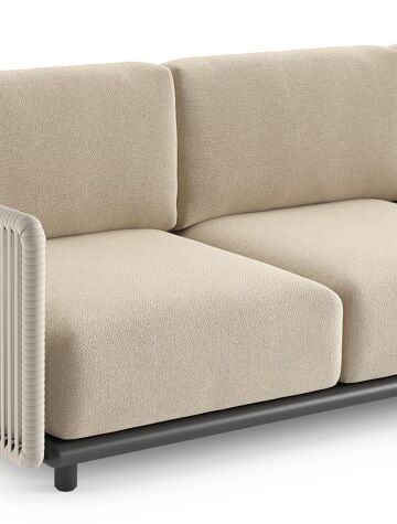 Organo loungebank in zwart aluminium en beige verticaal geweven luxe vlakke rope met althea chalk all weather Cosytica kussen | Exterioo