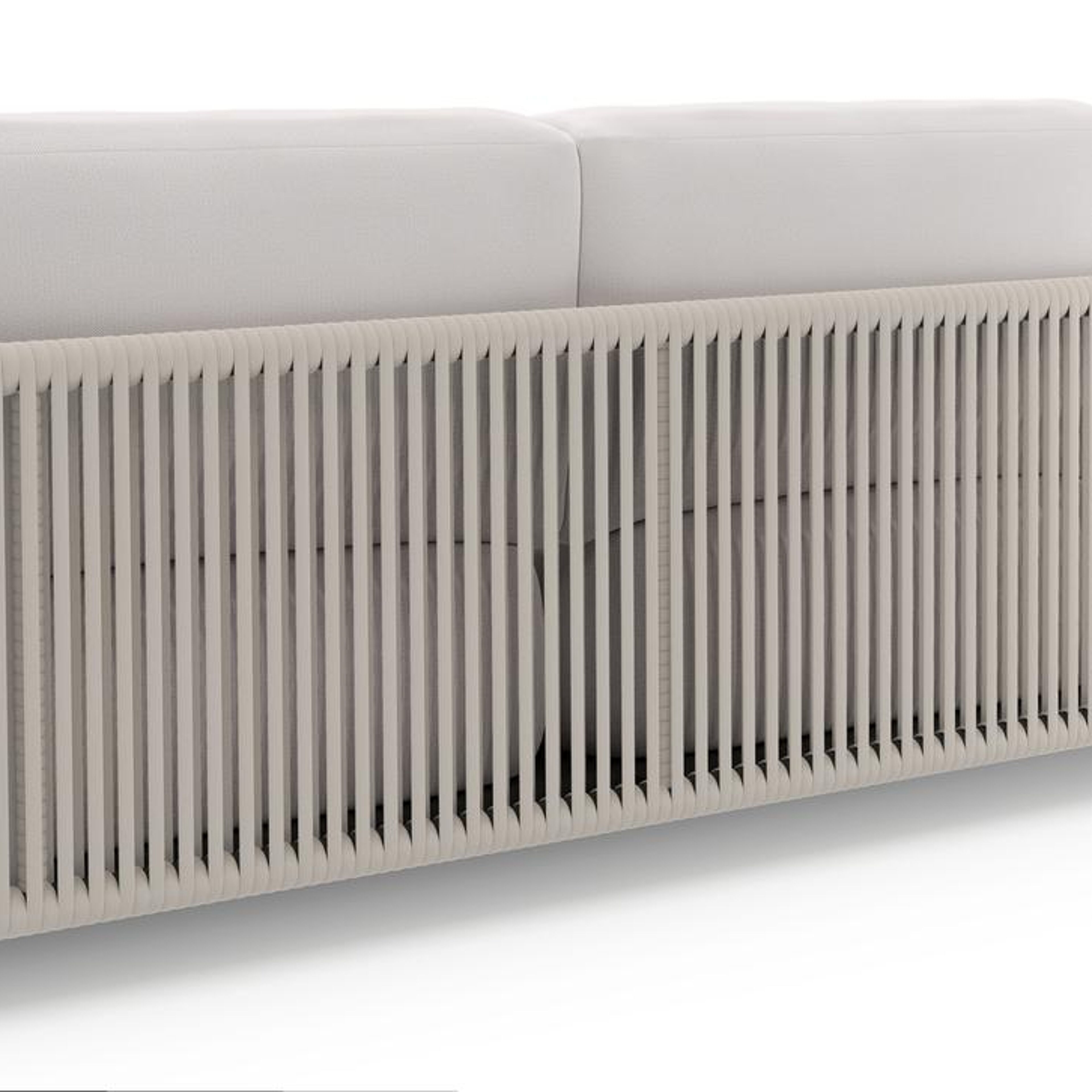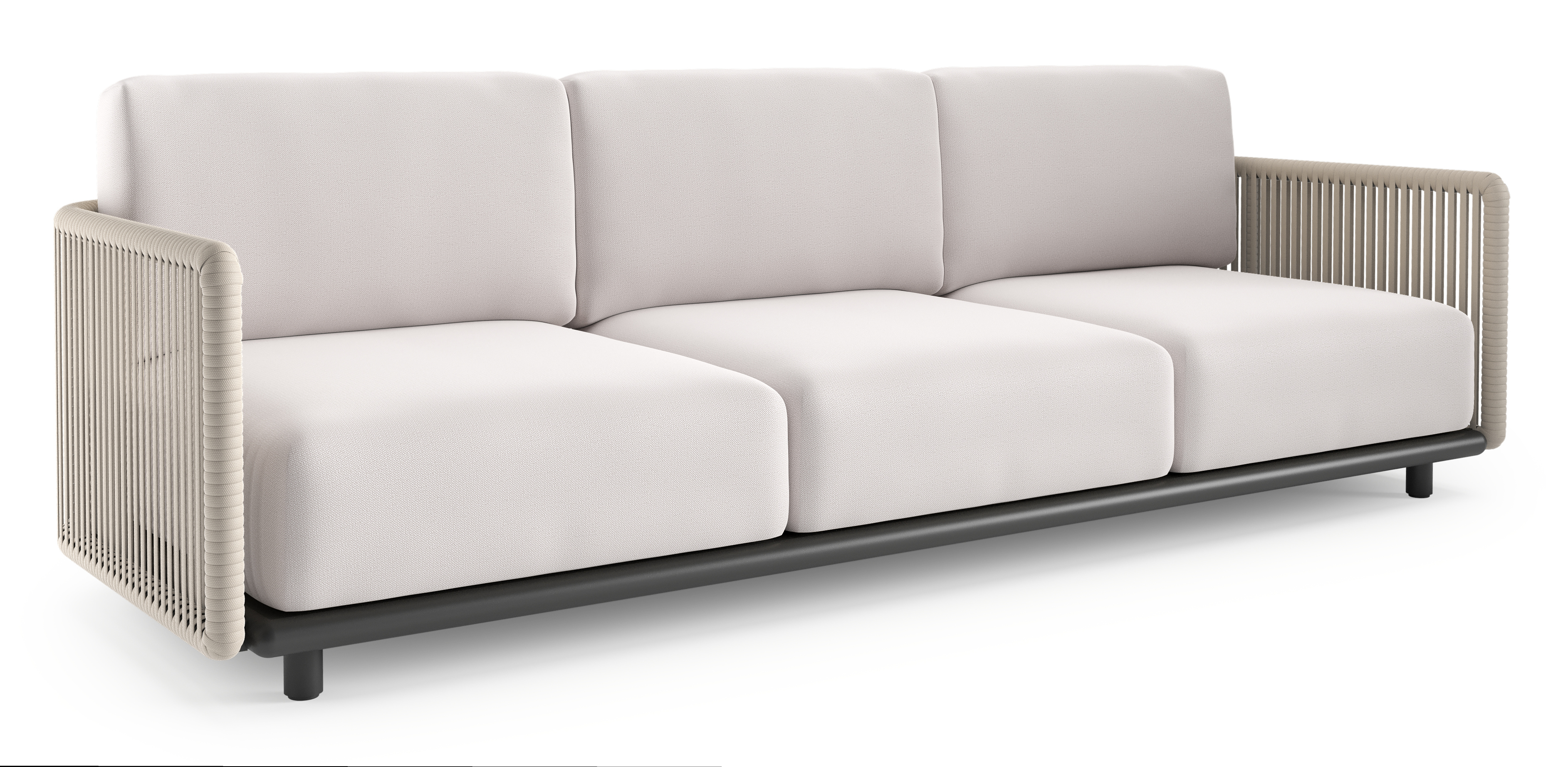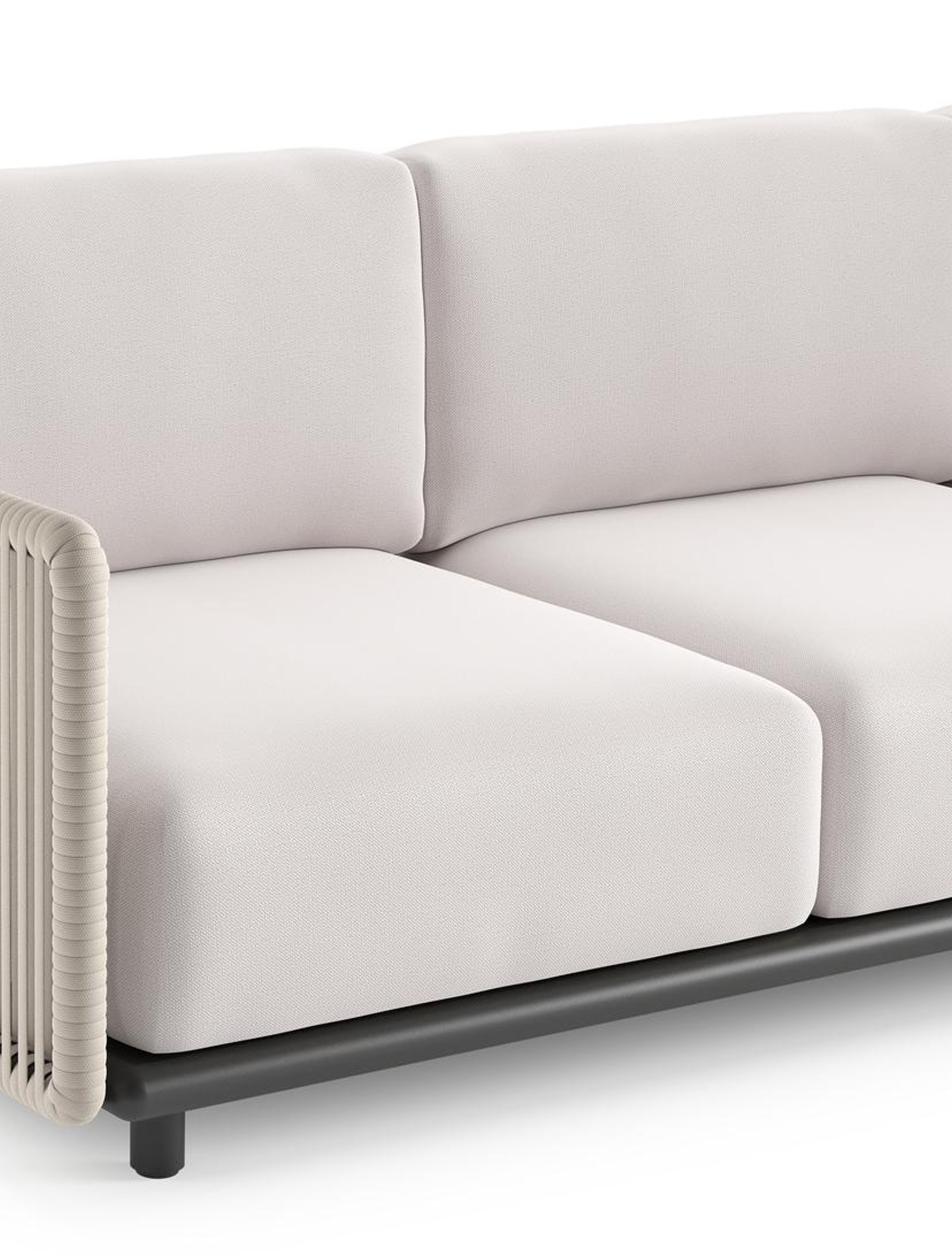 Organo loungebank in zwart aluminium en beige verticaal geweven luxe vlakke rope met savane whisper all weather Sunbrella® luxe kussen | Exterioo tuinmeubelen