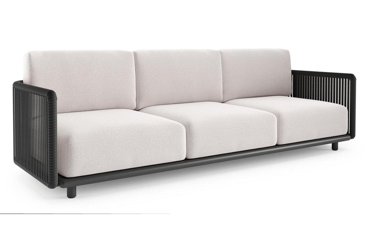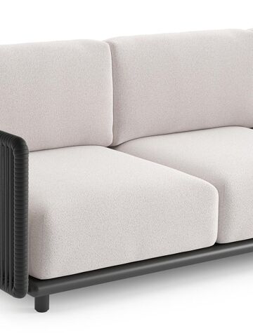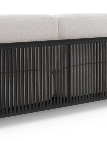 Organo loungebank in zwart aluminium en zwart verticaal geweven luxe vlakke rope met ego eggshell all weather Solica kussen | Exterioo