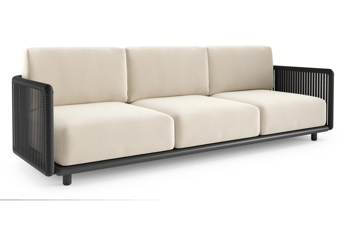 Organo loungebank in zwart aluminium en zwart verticaal geweven luxe vlakke rope met althea off white all weather Cosytica kussen | Exterioo