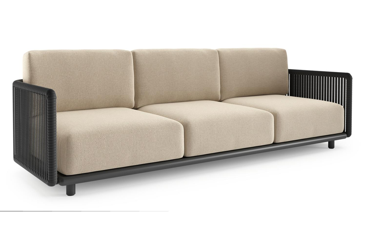 Organo loungebank in zwart aluminium en zwart verticaal geweven luxe vlakke rope met althea chalk all weather Cosytica kussen | Exterioo