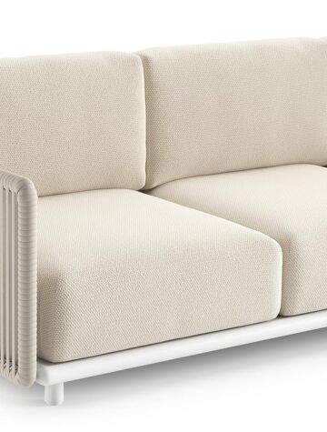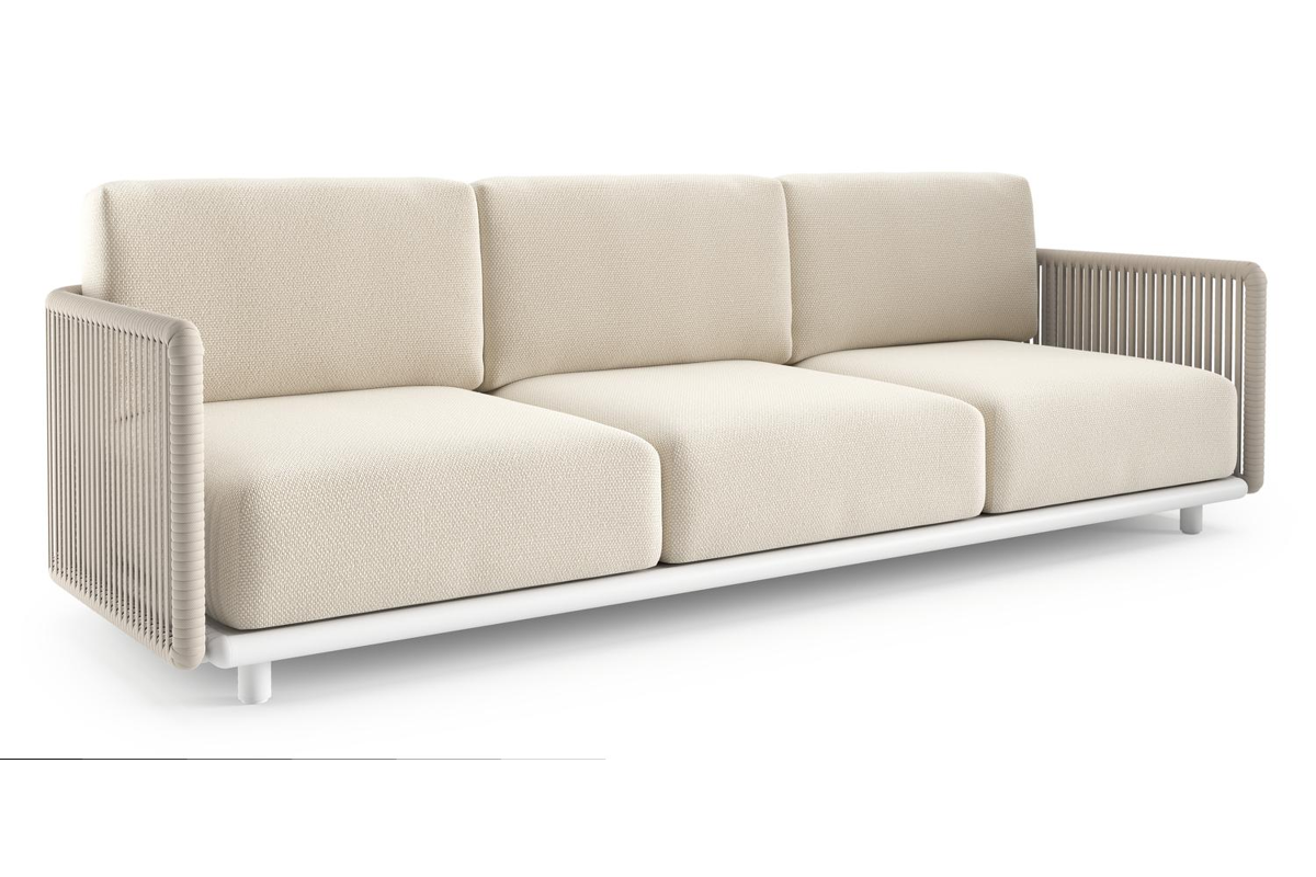Organo loungebank 3-zit in wit aluminium en beige verticaal geweven luxe vlakke rope met althea off white All Weather Cosytica kussen | Exterioo