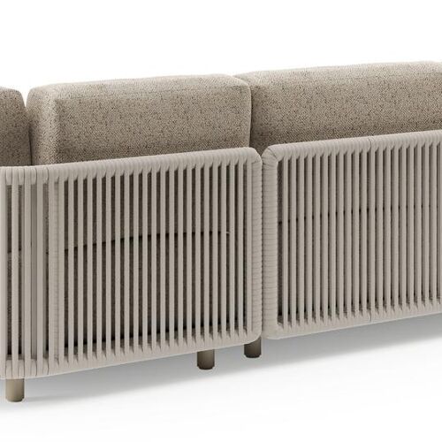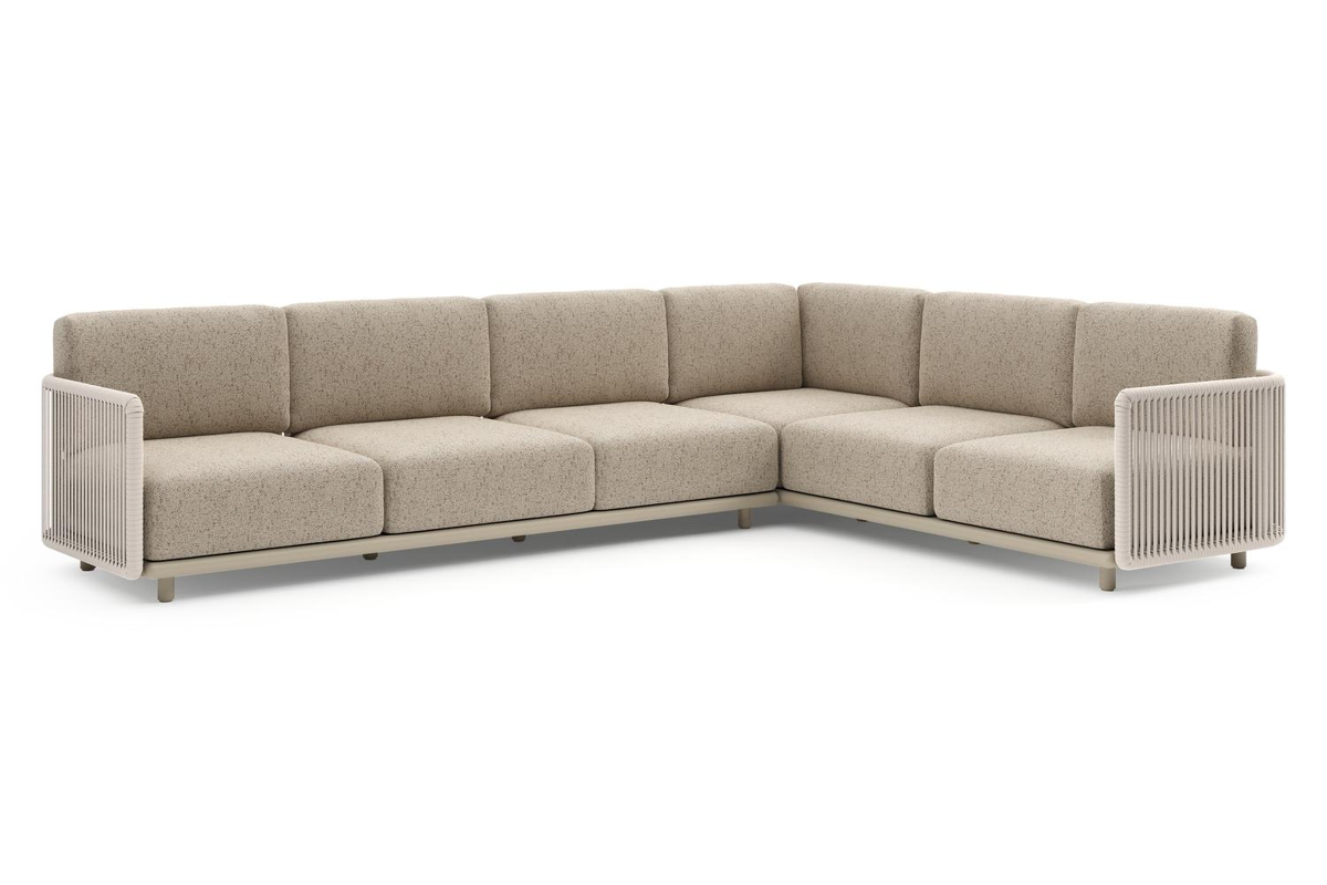 Organo loungehoek in beige aluminium en beige verticaal geweven luxe vlakke rope met bora jungle all weather Cosytica kussen | Exterioo
