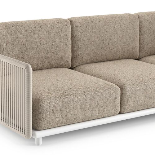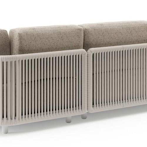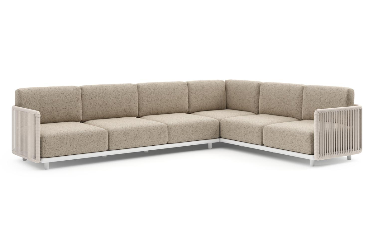 Organo loungehoek in wit aluminium en beige verticaal geweven luxe vlakke rope met bora jungle all weather Cosytica kussen | Exterioo