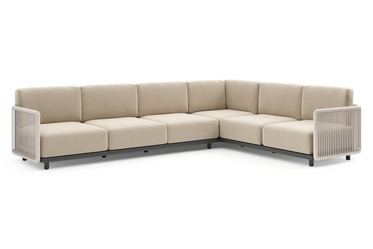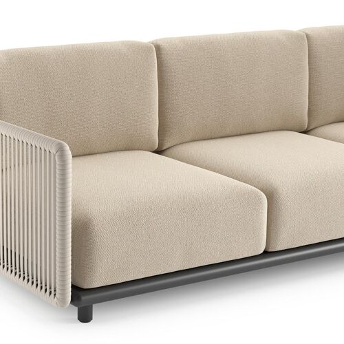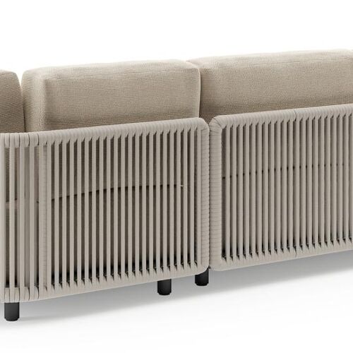 Organo loungehoek in zwart aluminium en beige verticaal geweven luxe vlakke rope met althea chalk all weather Cosytica kussen | Exterioo
