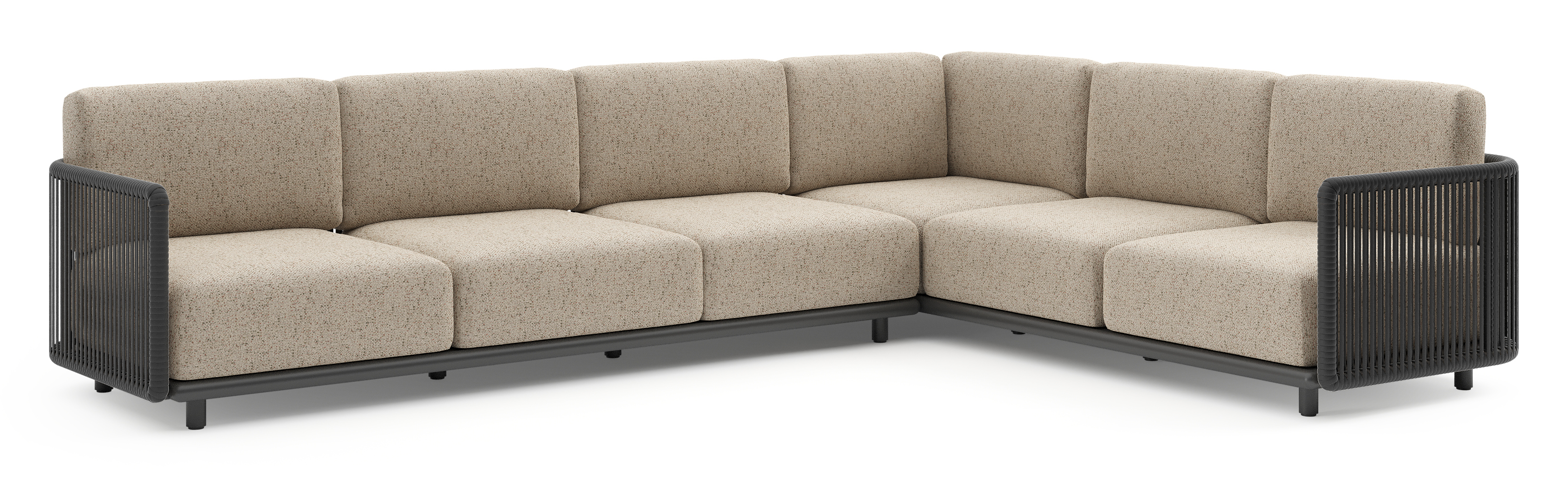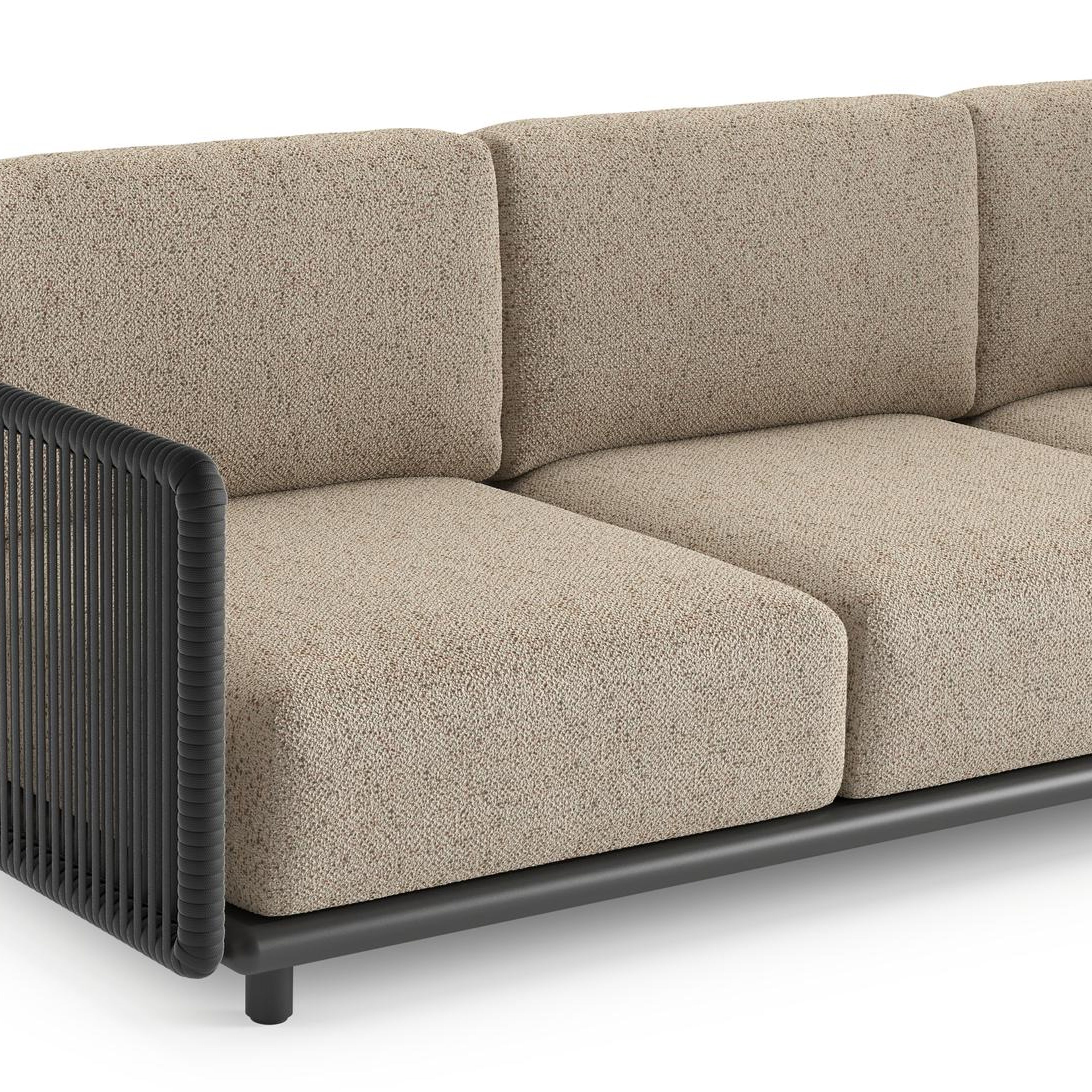 Organo loungehoek in zwart aluminium en zwart verticaal geweven luxe vlakke rope met bora jungle all weather Cosytica kussen | Exterioo tuinmeubelen
