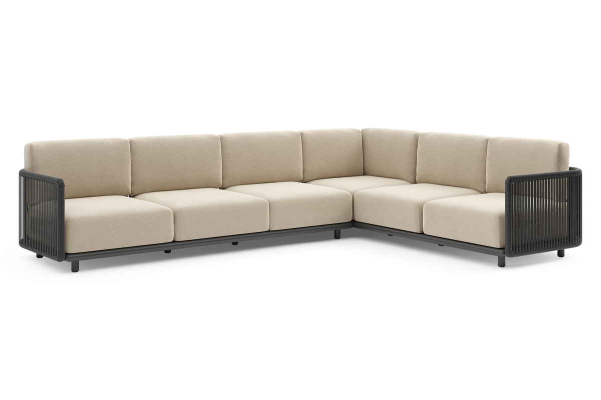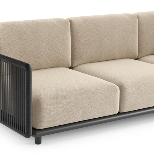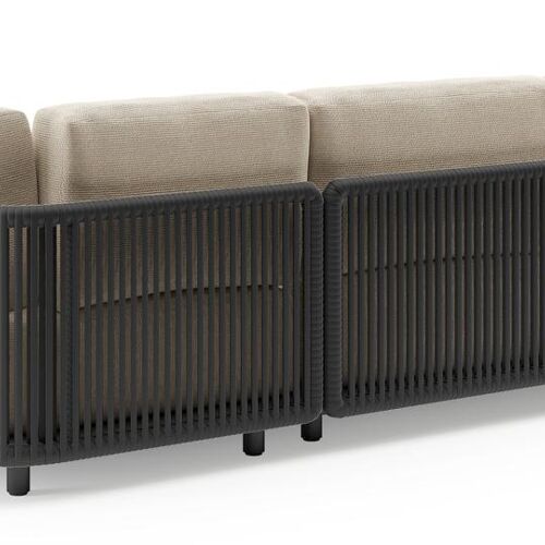 Organo loungehoek in zwart aluminium en zwart verticaal geweven luxe vlakke rope met althea chalk all weather Cosytica kussen | Exterioo