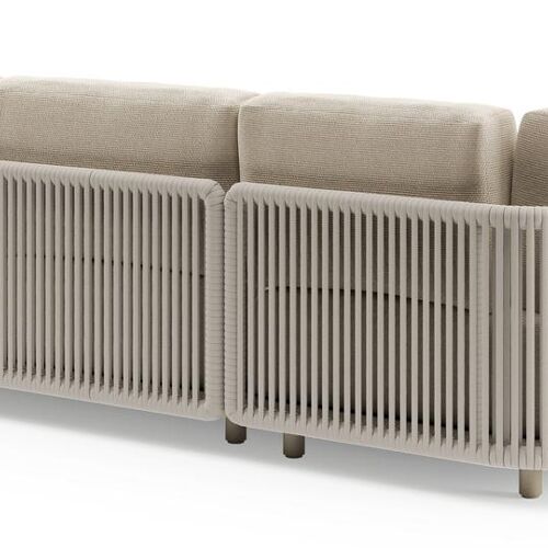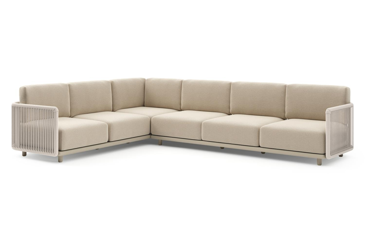 Organo loungehoek in beige aluminium en beige verticaal geweven luxe vlakke rope met althea chalk all weather Cosytica kussen | Exterioo