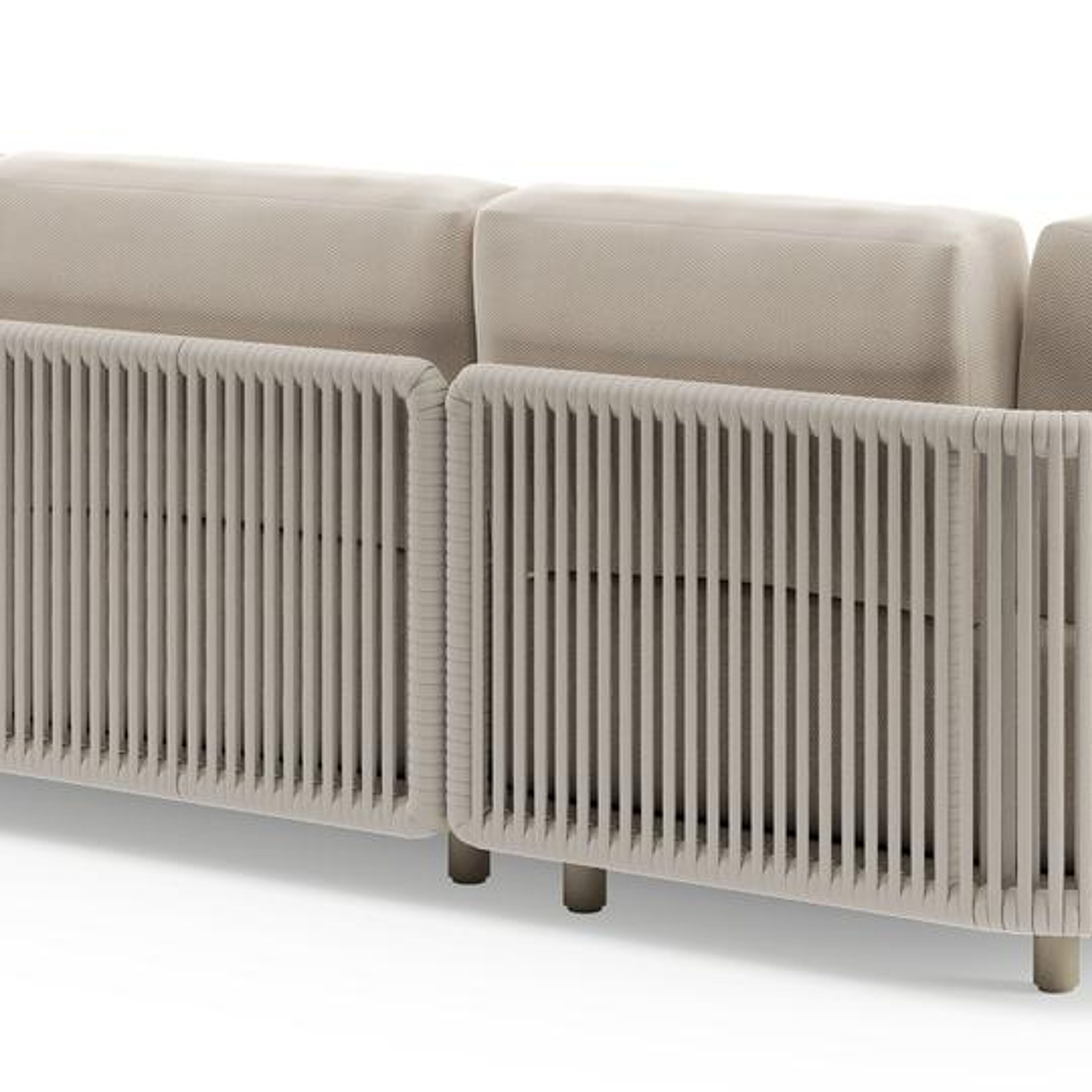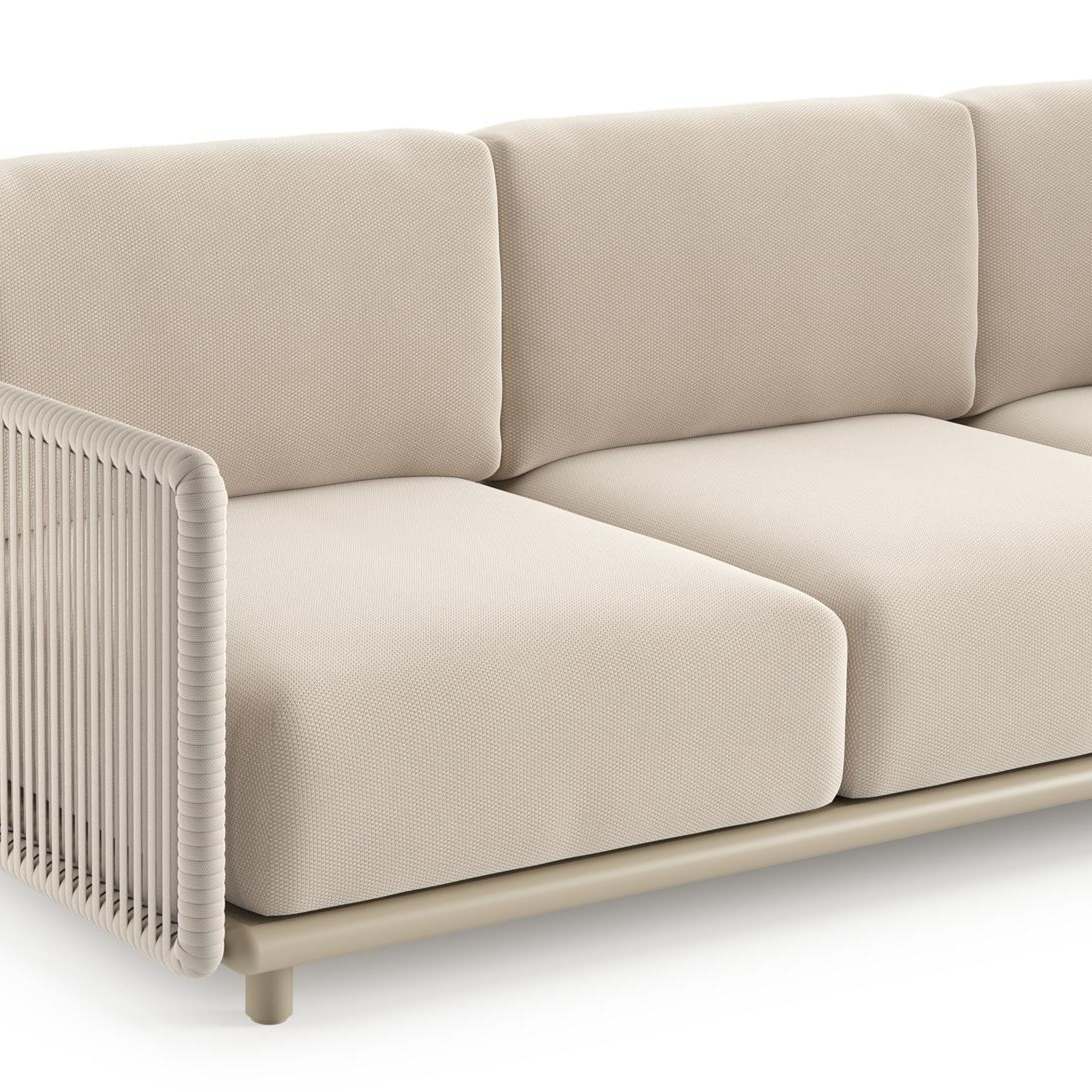 Organo loungehoek in beige aluminium en beige verticaal geweven luxe vlakke rope met lopi antique all weather Sunbrella® luxe kussen | Exterioo tuinmeubelen
